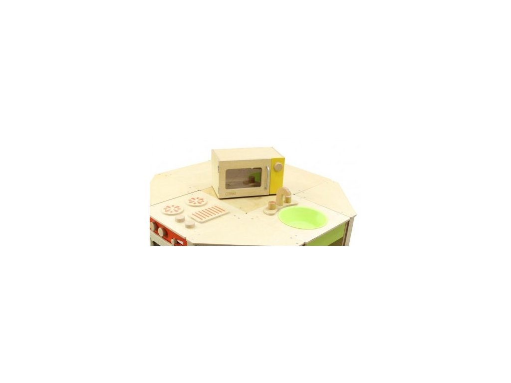 Táto kompaktná mikrovlnná rúra s moderným dizajnom sa dokonale hodí do kuchynskej súpravy a spestrí hru na varenie. K zábave prispievajú dvierka otvárané do boku, ovládací gombík, digitálny displej a priehľadné okienko. Podporujú predstieranú hru a sociálny a emocionálny rozvoj. Súpravu možno kombinovať s ďalšími kusmi z tejto kolekcie a vytvoriť tak kompletnú kuchynskú zostavu alebo ju používať samostatne. Na jednoduché čistenie ju stačí utrieť vlhkou handričkou a nechať uschnúť.