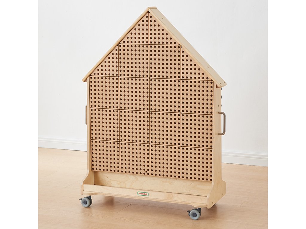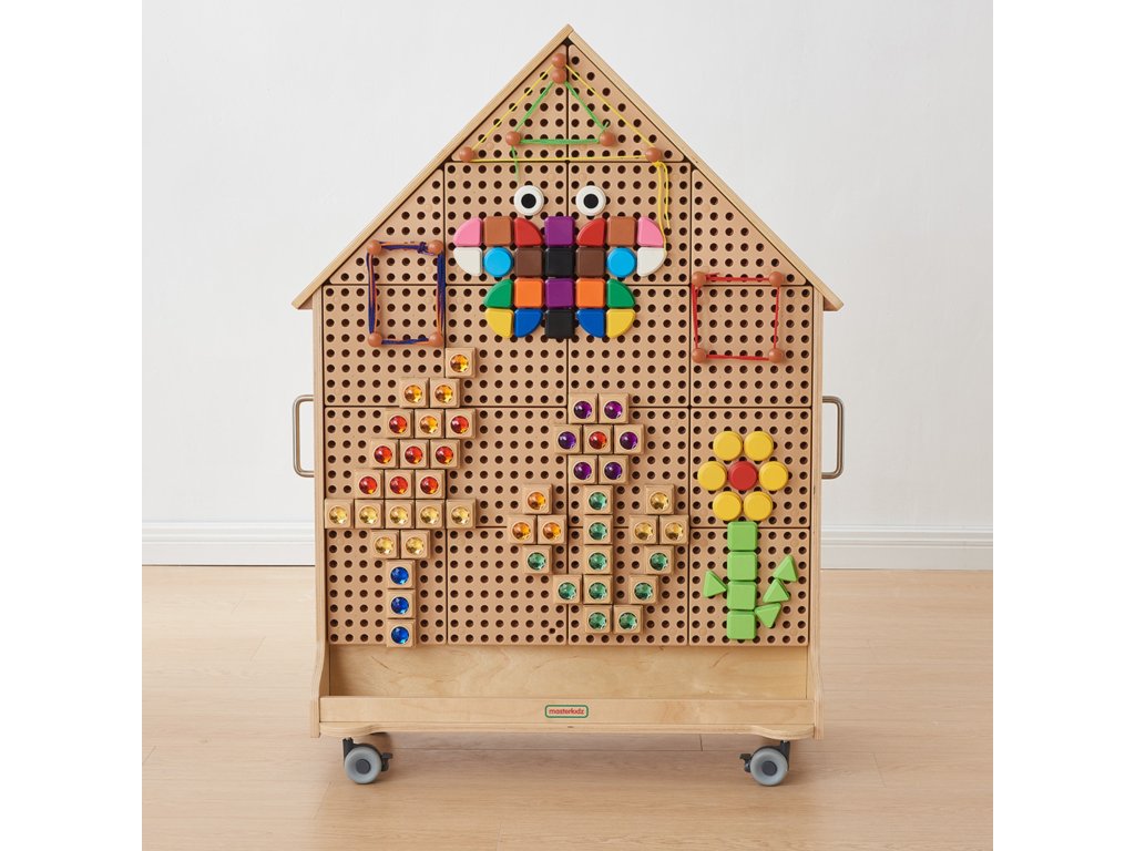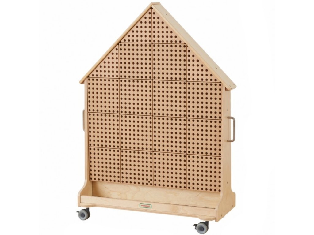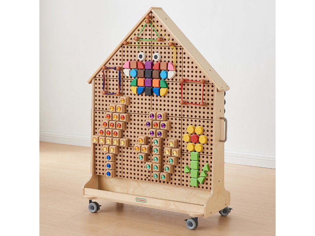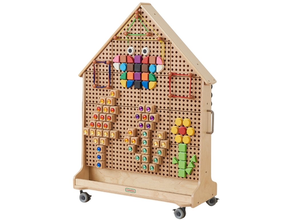 Voľne stojaca tabuľa STEM v tvare domčeka je dokonalým úvodom do sveta STEM. Skvelý panelvzdelávacie a vedecké, ktorés kolesami wsa dá ľahko premiestniť. Vďaka tejto tabuli batoľa spoznásvet mechanizmov, fyziky, matematiky amnoho ďalších zaujímavých vecí. Vyhradené kolíky, a farebné prvky umožňujú dieťaťu vytvárať jedinečné konštrukcie a nádherné vzory.