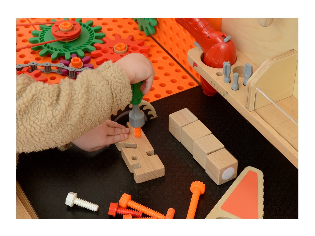 MASTERKIDZ Drevená XXL Montessori STEM dielňa s náradím + príslušenstvo