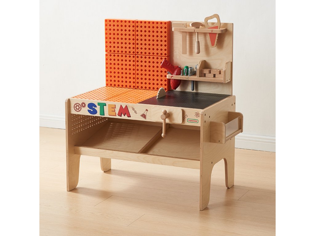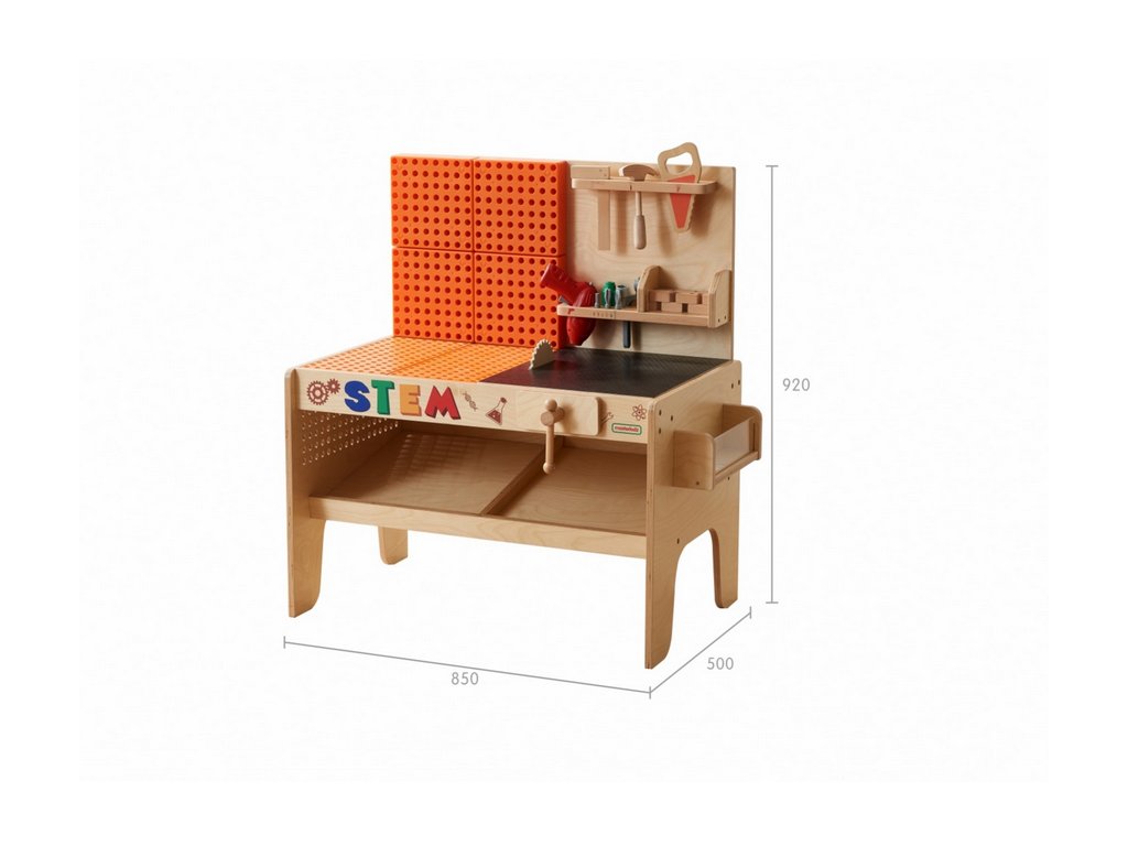 Drevená dielňa STEM XXL od značkyMasterkidz je ideálnym miestom na experimentovanie, ktorérozvíja kreativitu itechnické zručnosti dieťa. Je vyrobená z kvalitného dreva a spája hru s učením, vďaka čomu deti objavujú princípymechanika,inžinierstvo i fyzika. Realisticky vyzerajúca dielňa bude veľkou atrakciou v každej triede alebo herni a povzbudí deti k vytváraniu fungujúcich systémov a stavaniu s realistickými nástrojmi.