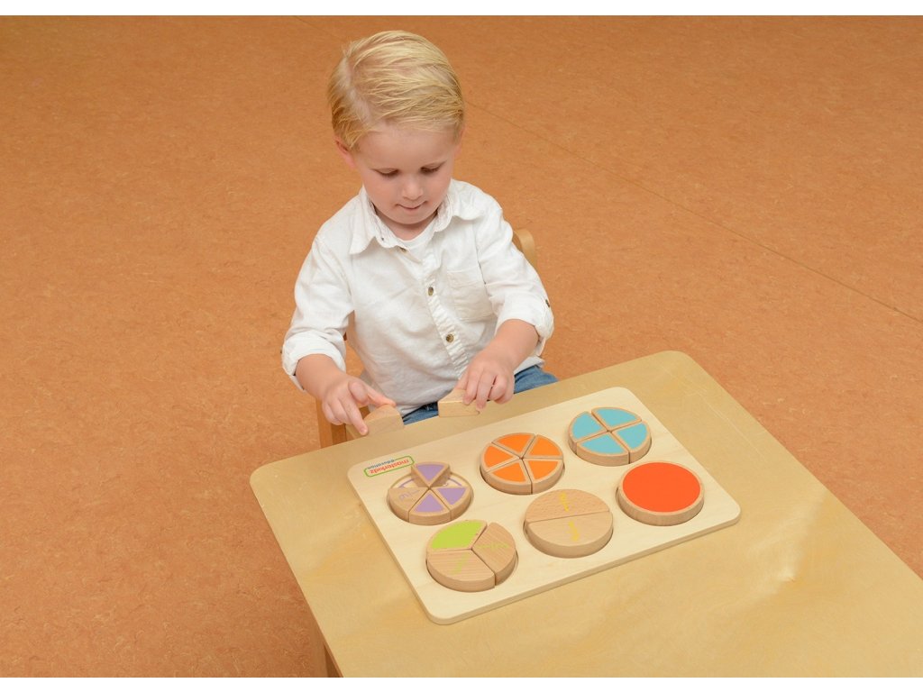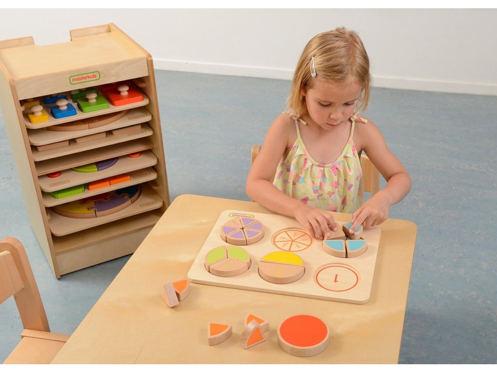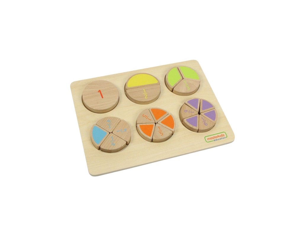 Toto nádherné drevené puzzle odMASTERKIDZ robí z učenia základných matematických pojmov jednoduché a príjemné dobrodružstvo. Farebné dieliky vyrezané z európskeho dreva umožňujú dieťaťu na vlastné oči vidieť, ako funguje delenie celku na časti. Každý dielik zapadá na svoje miesto podľa farby a na zadnej strane nájdete napísané zlomky - dvojitá dávka vzdelávacej zábavy. Ideálne pre batoľatá, ktoré robia prvé kroky do sveta matematiky, ako aj pre staršie deti, ktoré si upevňujú vedomosti získané v škole.