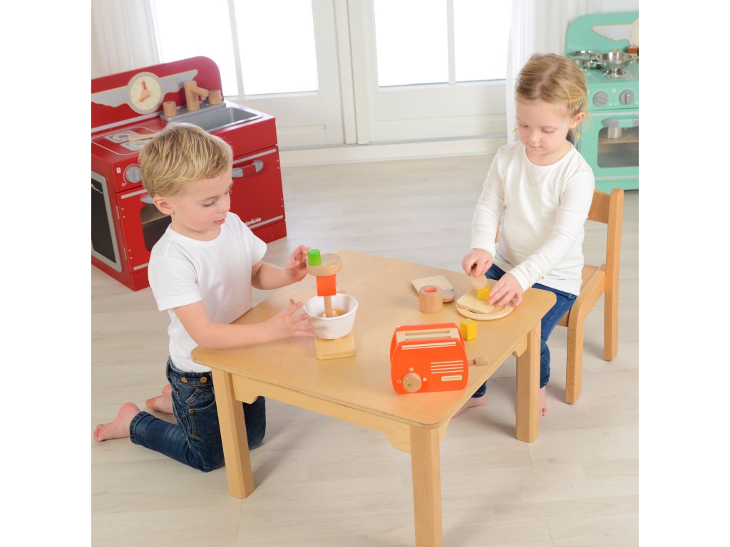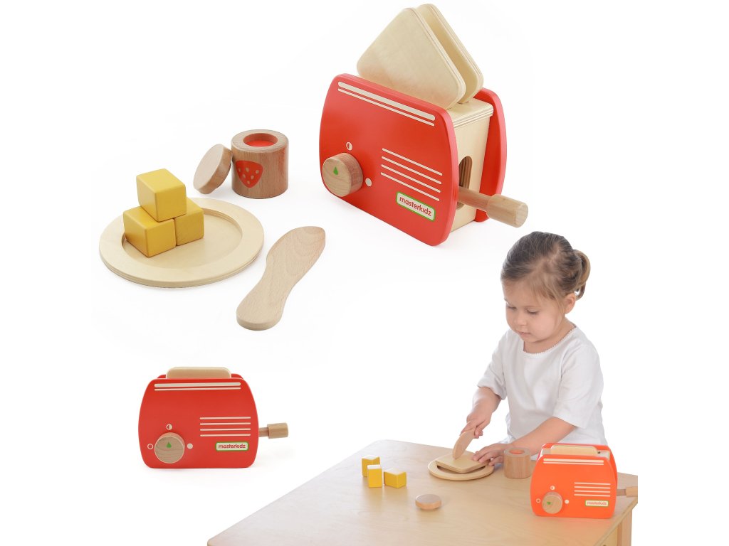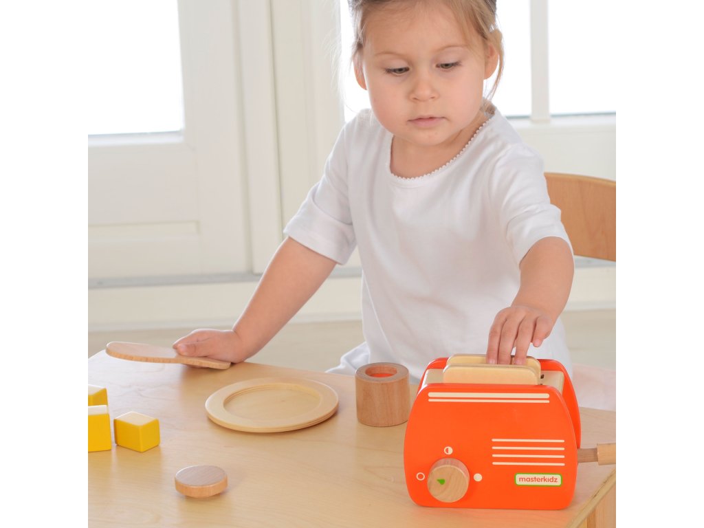 Drevený hriankovač Masterkidz je estetická a odolná vzdelávacia hračka, ktorá podnecuje deti k tvorivej hre a rozvíja ich manuálne a sociálne zručnosti. Vďaka robustnej konštrukcii z prírodného dreva je hriankovač bezpečný a príjemný na používanie a jeho funkčné prvky - pohyblivá páka a číselník - robia hru ešte realistickejšou. Súprava je skvelá na samostatnú hru aj na hranie rolí spoločne s rovesníkmi alebo dospelými.