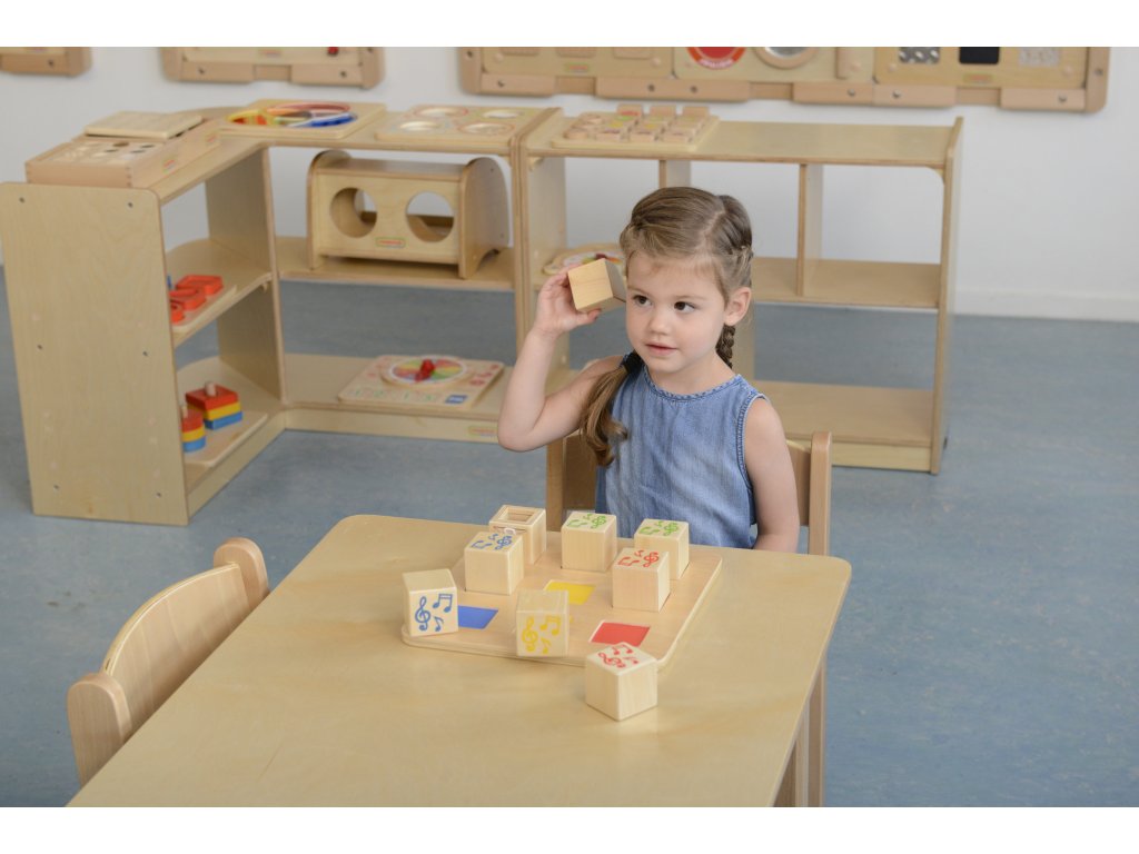 - - Sada sa skladá z hracej dosky a ôsmich drevených kociek, ktoré po zatrasení vydávajú rôzne zvuky. Úlohou dieťaťa je priradiť kocky do dvojíc a naznačiť zvuky, ktoré vydávajú. Nájdite dvojice kociek, ktoré vydávajú rovnaký zvuk.