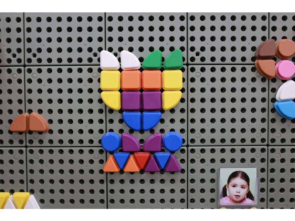 - - Farebné kolíky v 4 rôznych geometrických tvaroch a 8 farbách.