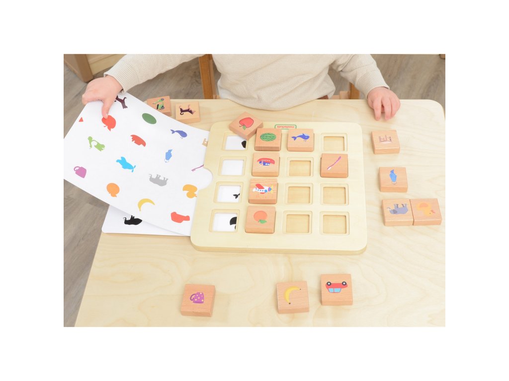 - - Tri úrovne obtiažnosti vďaka vymeniteľným kartám: rovnaké ilustrácie, farebné siluety a čierne siluety.