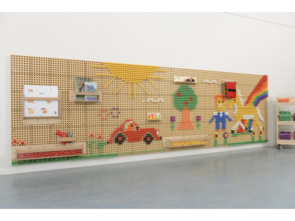 STEM Masterkidz Manipulačná nástenná tabuľa umožňuje kreatívnu hru a spoznávanie sveta vedy. Široké panely s rozmermi 80x120 cmdoska má otvory, do ktorých možno vložiť farebné kolíky a vytvoriť tak krásne vzory. Na tabuľu sa dajú pripevniť aj rôzne vzdelávacie pomôcky, ozubené kolesá, systémy čerpadiel a iné zaujímavé prvky.