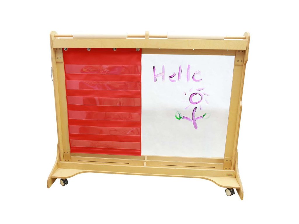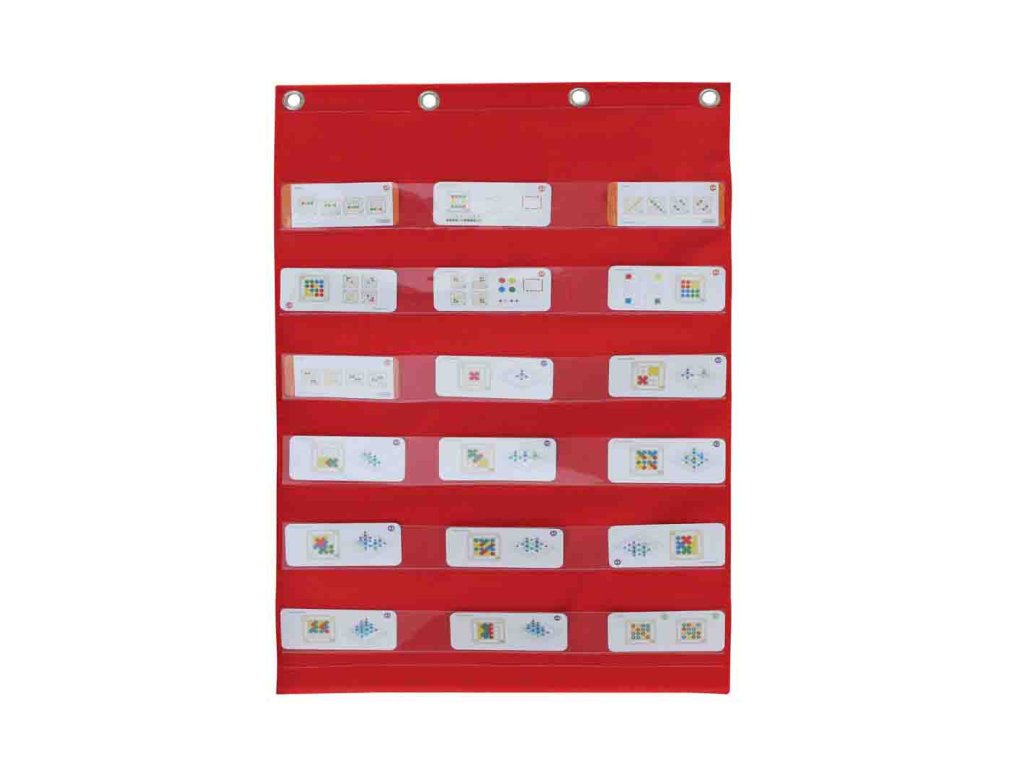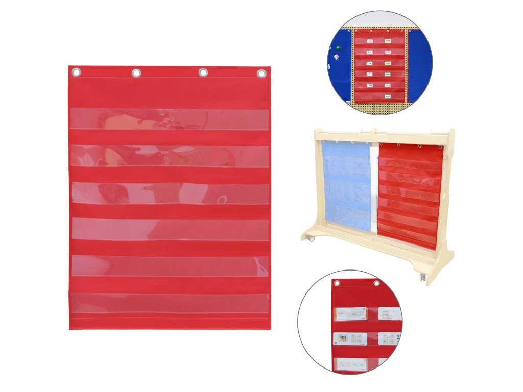 MASTERKIDZ Látkové závesné listy s vreckami na frázové a obrázkové karty červené