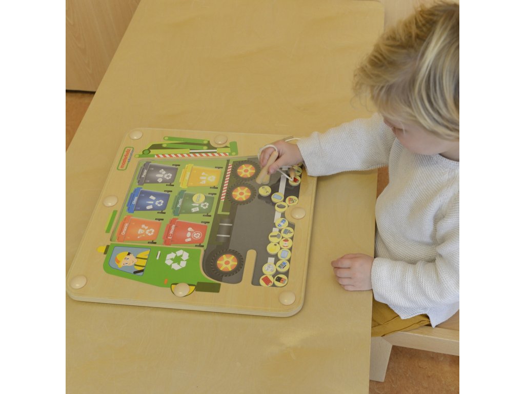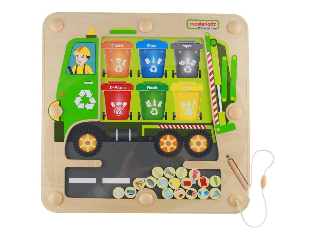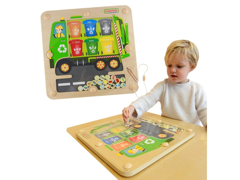 MASTERKIDZ Magnetická tabuľa na triedenie odpadu Montessori Recyklačné auto