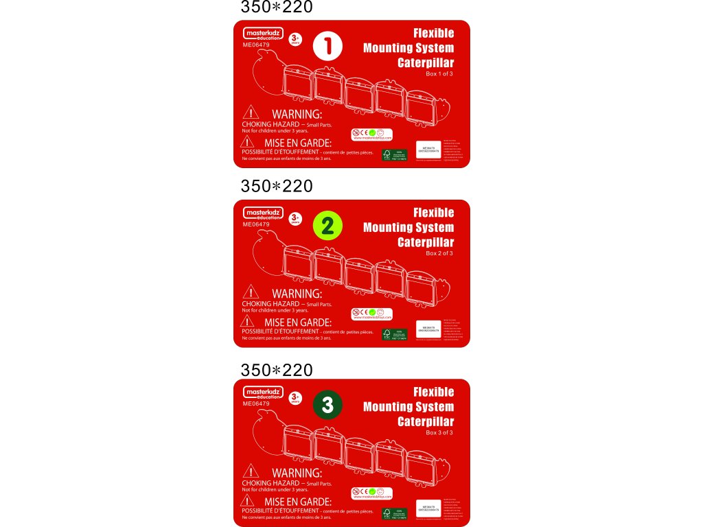 Systém má 5 vzdelávacích rámov tabule Masterkidz Flex afarebné drevené podložky v tvare trupu húsenice. Je ideálny na použitie v škôlkach, ale aj v herniach, klinikách a ergoterapeutických centrách pre deti s autizmom, aspergerom a poruchami SI.