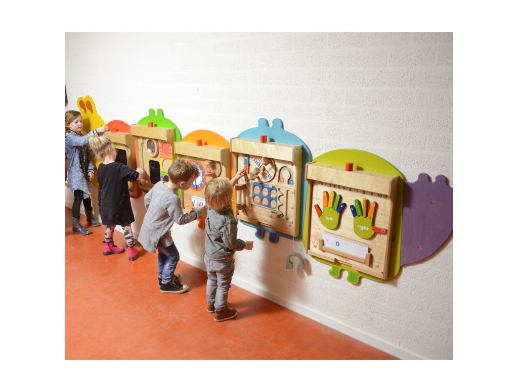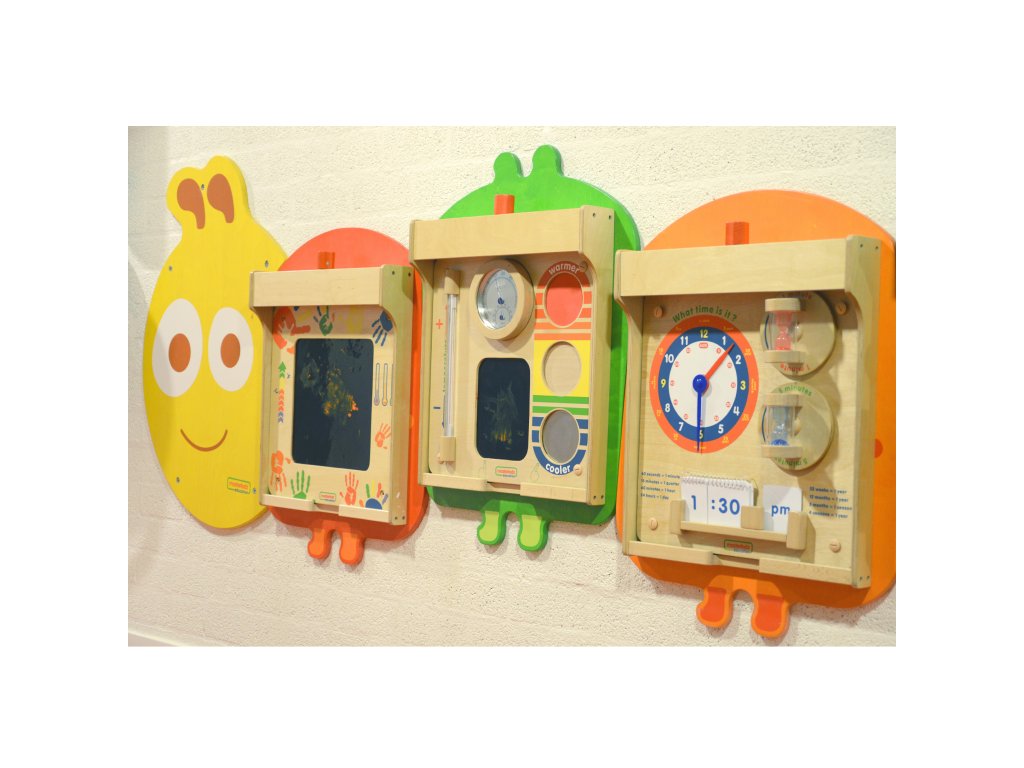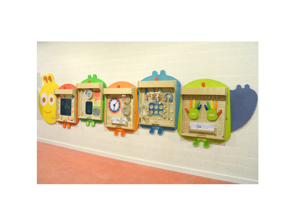 Už vás nebavia roky visiace rovnaké nástenky pre deti? Neviete, čo robiť, keď sa jedna z tabúľ poškodí a pod ňou je poškodená stena? Máme pre vás ideálne riešenie: masterkidz Flex nástenný montážny systém vo formekrásna a farebná húsenica. Na výmenu dosky nie sú potrebné žiadne nástroje a montáž a demontáž jednotlivých hračiek je neuveriteľne jednoduchá a rýchla. Vybratie jedného a vloženie druhého trvá menej ako minútu. Učiteľ môže voľne vymieňať pomôcky medzi jednotlivými triedami a vyberať si tabule z konkrétnej kategórie: zmyslové, obratnostné, matematické atď.
