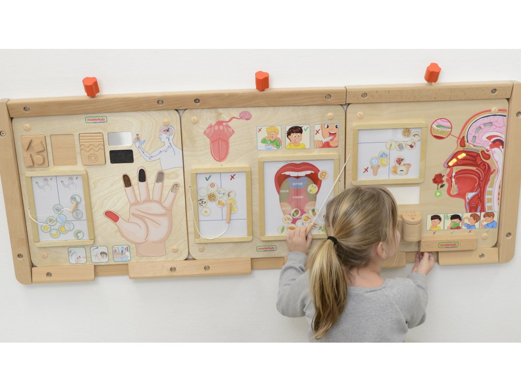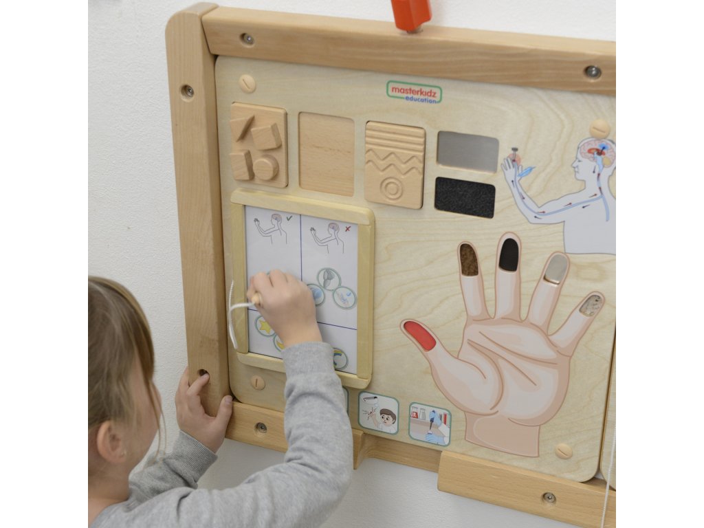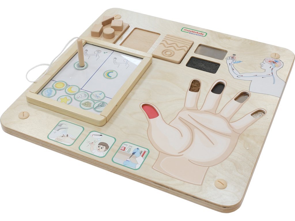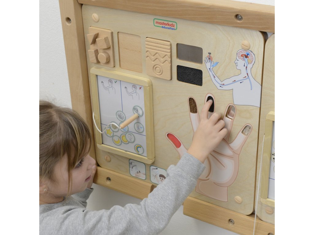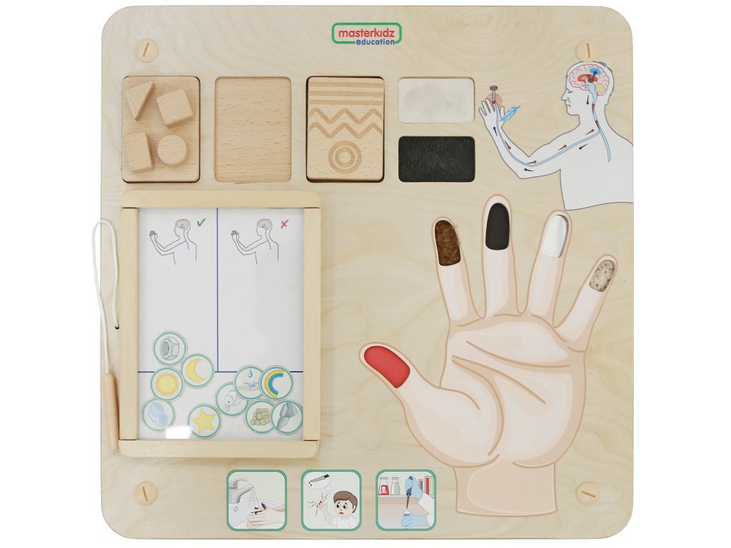 - - Tabuľa dieťaťu vysvetlí, ako funguje hmat, ako rozoznávame drsnosť, hladkosť, tvrdosť alebo mäkkosť rôznych predmetov, materiálov