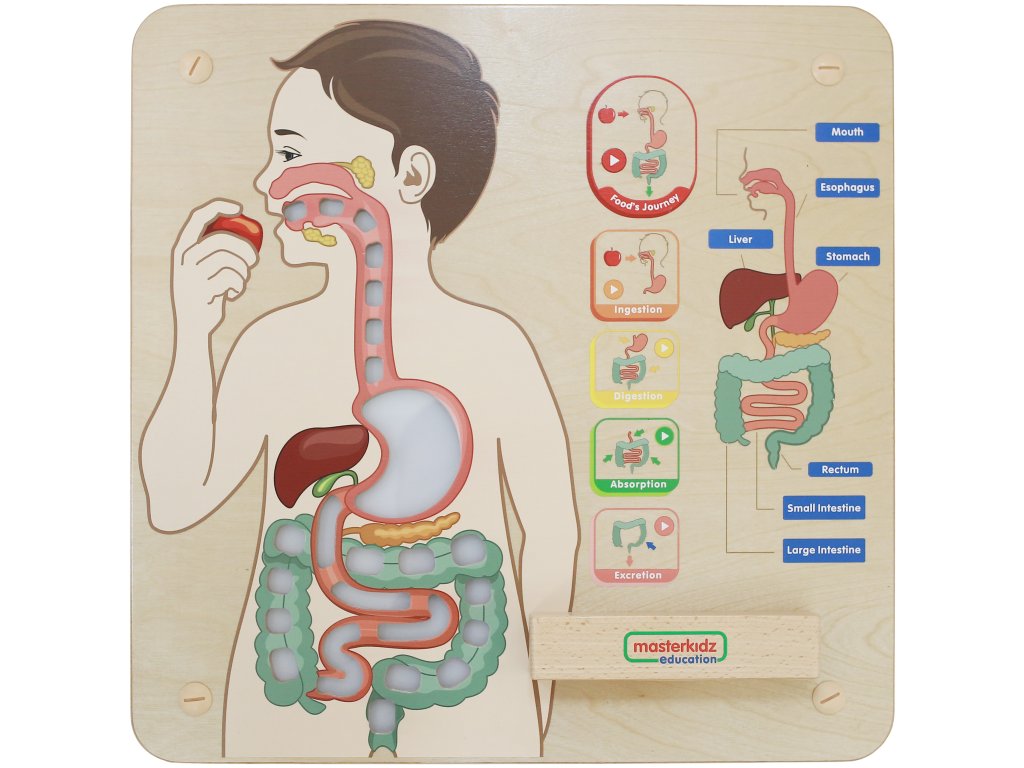 MASTERKIDZ Montessori tabuľa na výučbu tráviacej sústavy