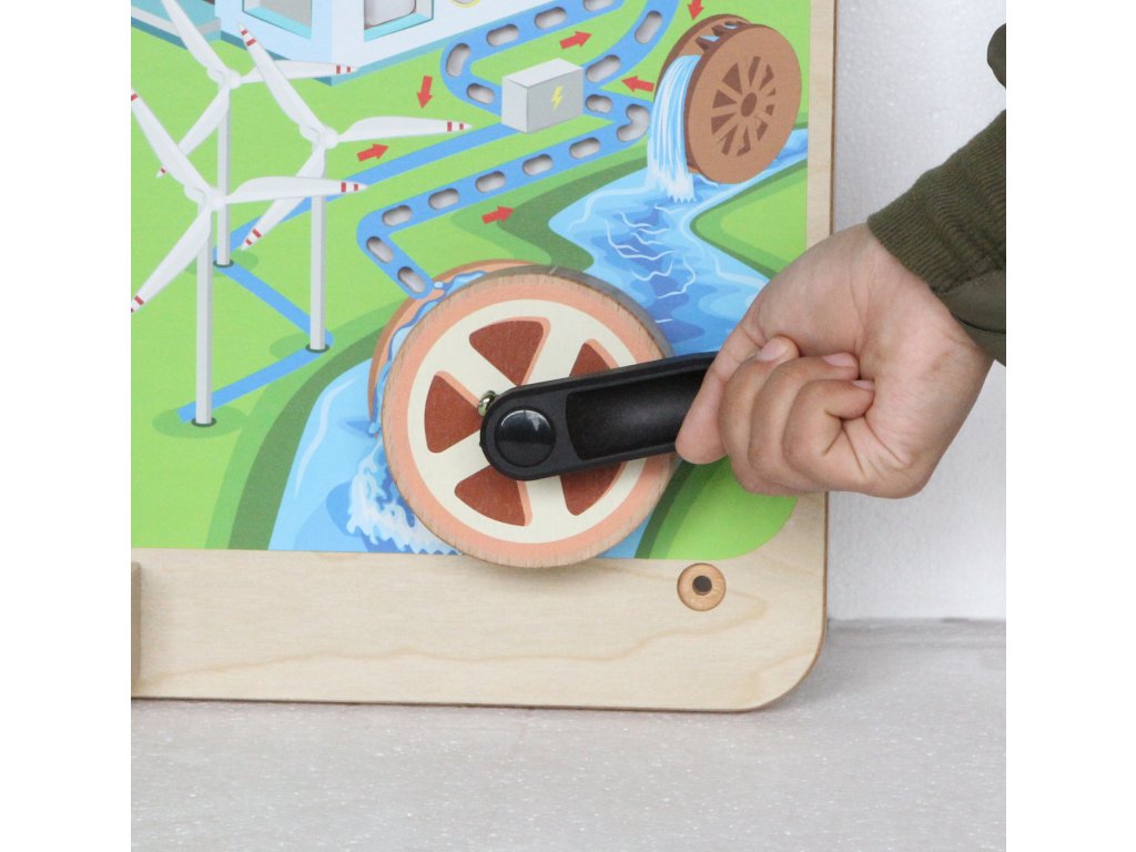 - - generátor vodnej energie s ručnou kľukou pomáha deťom ilustrovať, ako prúdiaca voda vytvára energiu