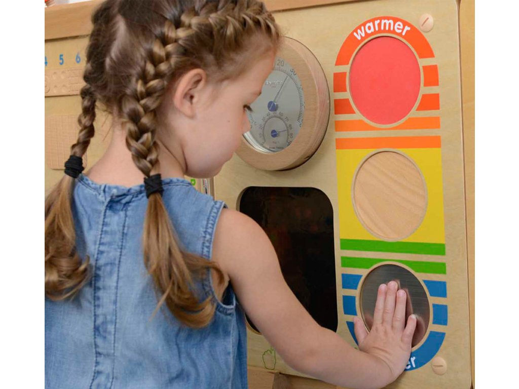 Hračka je vybavená tromi poliami s rôznymi teplotami:teplé,neutrálne istudený. Dieťa sa ich dotýka a na vlastnej koži zažíva rozdiel. Hračka poskytne zábavu vďakadoska citlivá na teploale prinesie aj veľa vzdelávacej hodnoty. Čierna tepelne citlivá doska je určená na dotyk studenou alebo teplou rukou. Čím teplejšia je ruka, tým červenší a jasnejší bude odtlačok zanechaný na čiernom povrchu.