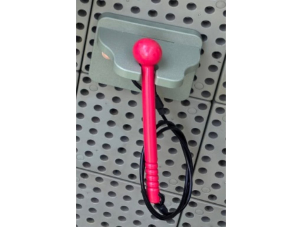 - - Obušok je pripojený k základni pomocou pevného a pružného kábla.