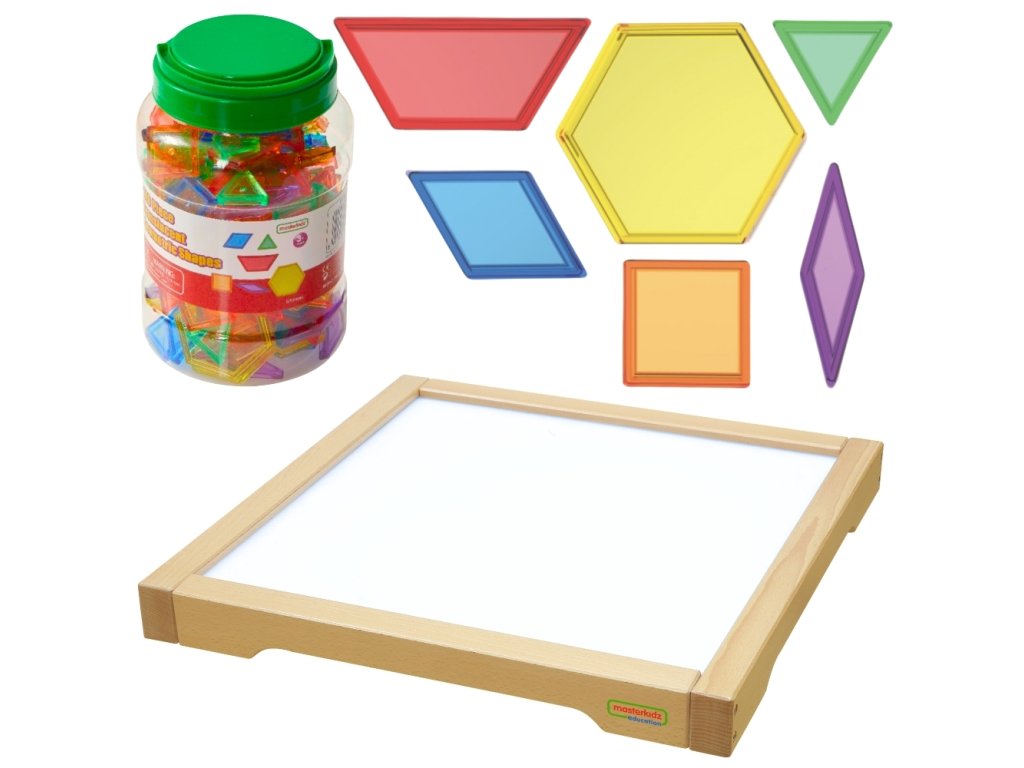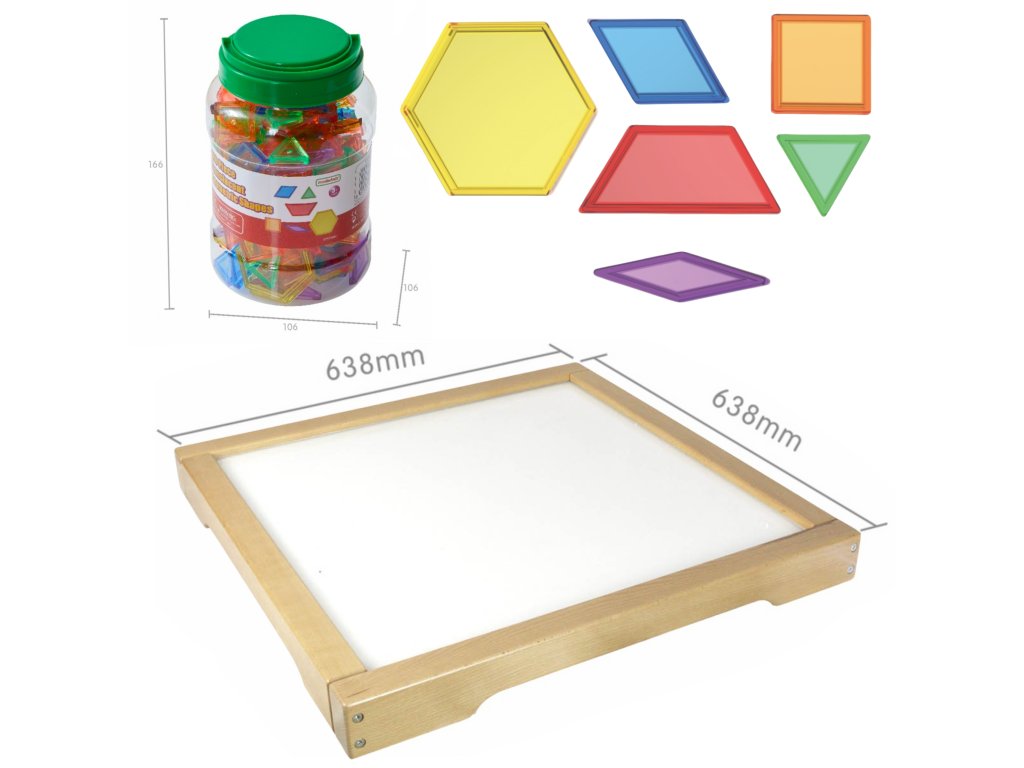 Panel Masterkidz LED Sensory Box je robustná drevená skrinka s bielym svetlom vyžarujúcim LED podsvietenie, navrhnutá renomovanou značkou Masterkidz. Umožňuje rôzne aktivity na podporu rozvoja kreativity, napríklad miešanie farieb alebo učenie prostredníctvom systému STEM. Pôsobivé výsledky sa dosiahnu, keď svetlo presvieti rôzne materiály - listy, papier, zásobník s pieskom alebo priehľadnú vodu. Panel dokonale spolupracuje s priloženými priehľadnými farebnými geometrickými obrazcami, ktoré počas hry podporujú rozvoj tvorivosti a predstavivosti.