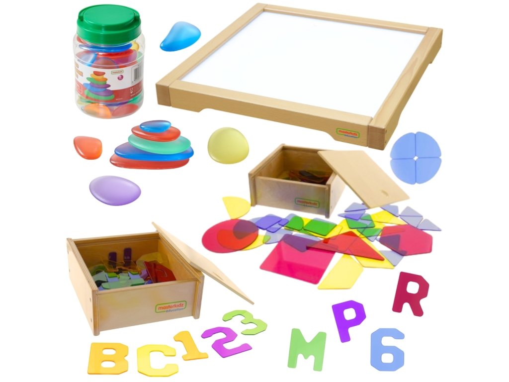 Panel Masterkidz LED Sensory Box je robustná drevená skrinka s bielym svetlom vyžarujúcim LED podsvietenie, navrhnutá renomovanou značkou Masterkidz. Umožňuje rôzne aktivity na podporu rozvoja kreativity, napríklad miešanie farieb alebo učenie prostredníctvom systému STEM. Pôsobivé výsledky sa dosiahnu, keď svetlo presvieti rôzne materiály - listy, papier, zásobník s pieskom alebo priehľadnú vodu. Panel dokonale spolupracuje s priloženým farebným príslušenstvom, ktoré obohacuje možnosti hry a učenia a umožňuje vytvárať rôzne vzory a kompozície vo svetle.