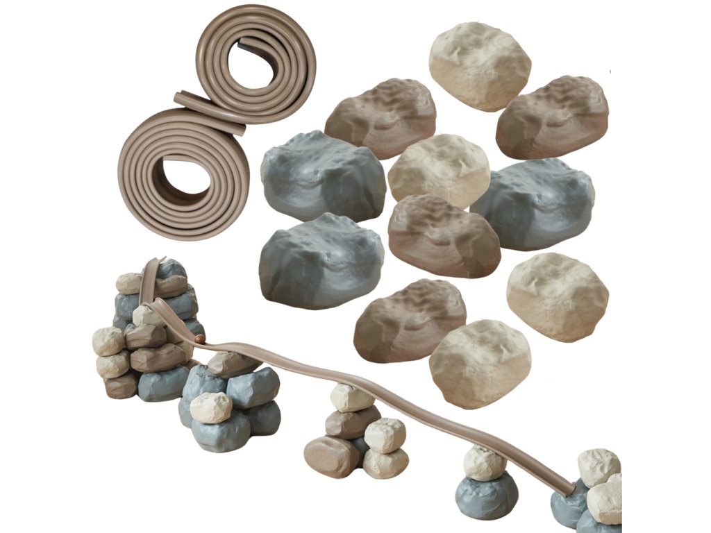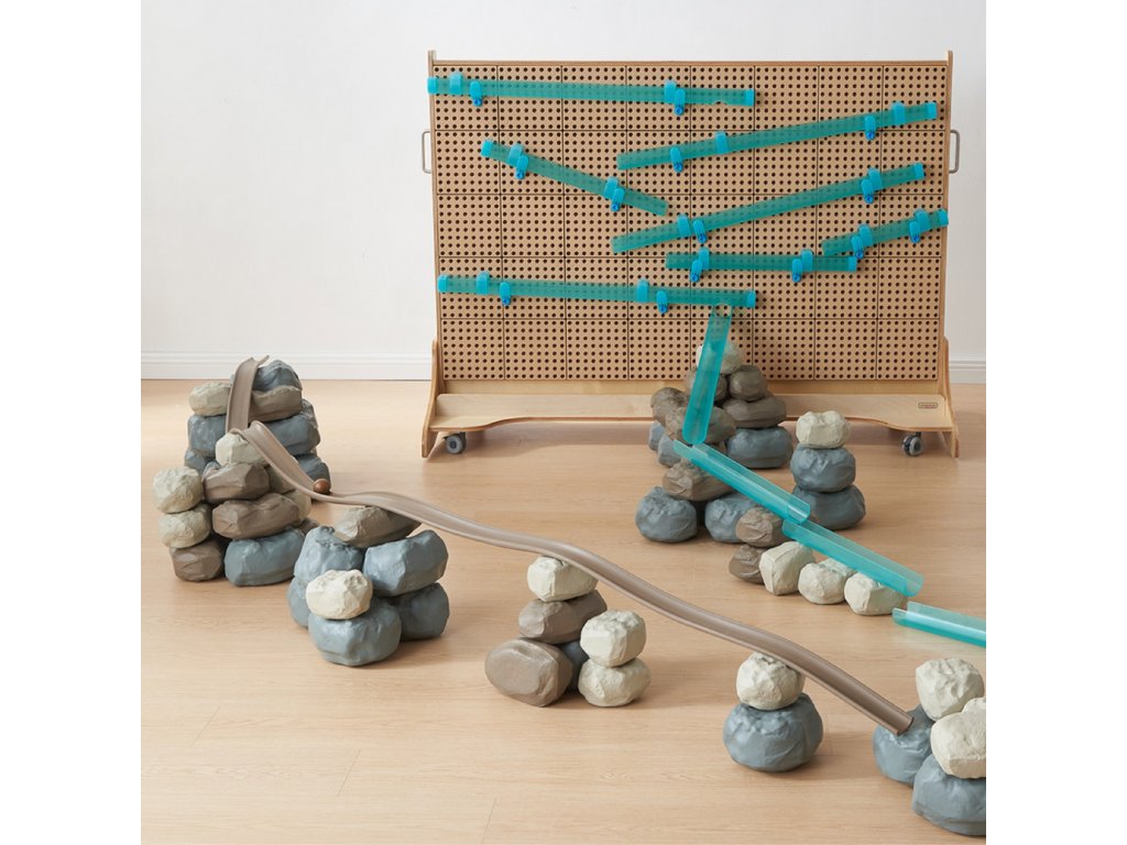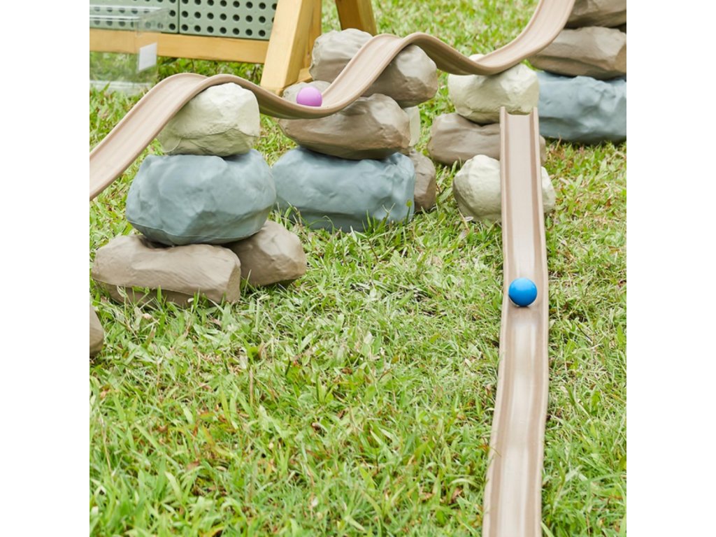 Pružná guľôčková dráha sú ľahké a bezpečné stavebné bloky z pružného plastu. Sú určené na kreatívnu hru, ktorá umožňuje konštrukcia podpier, prekážok irôzne konštrukcie pretekárskych dráh a experimenty s gravitáciou. Kamene sa dajú ľubovoľne rozmiestniť a vytvoriť tak jedinečné koľaje alebo štruktúry na podporu flexibilnej koľaje. Sú ideálne na sólovú alebo skupinovú hru a podporujú spoluprácu a kreativitu.