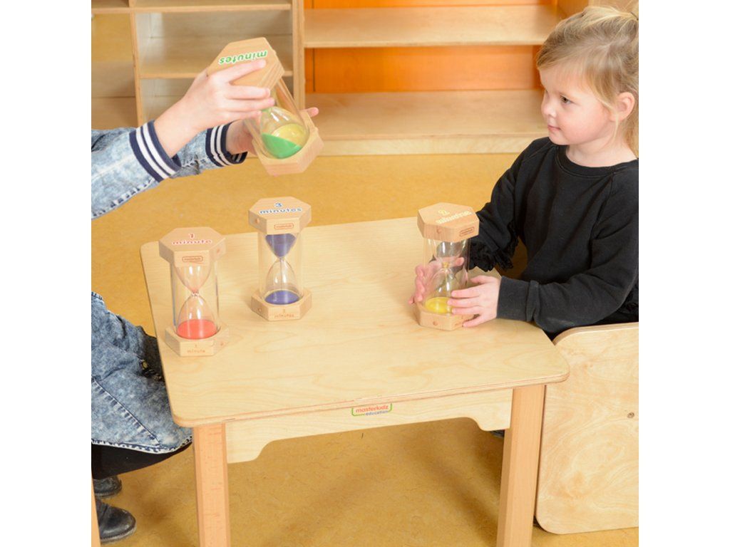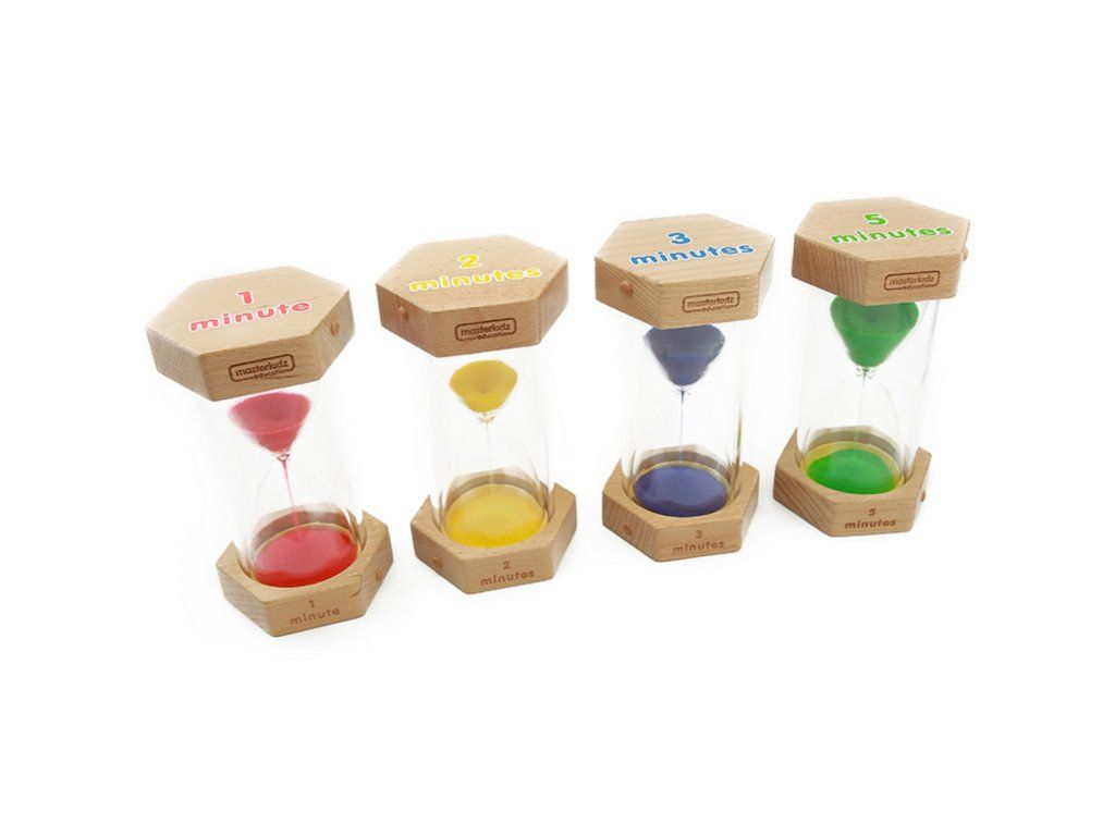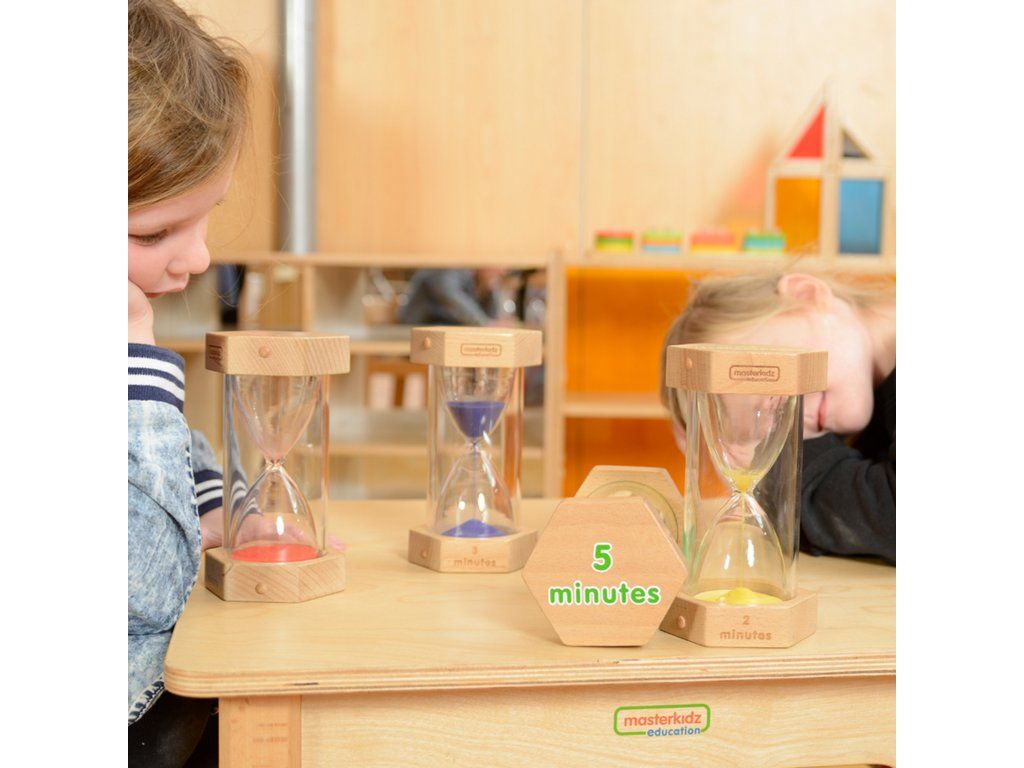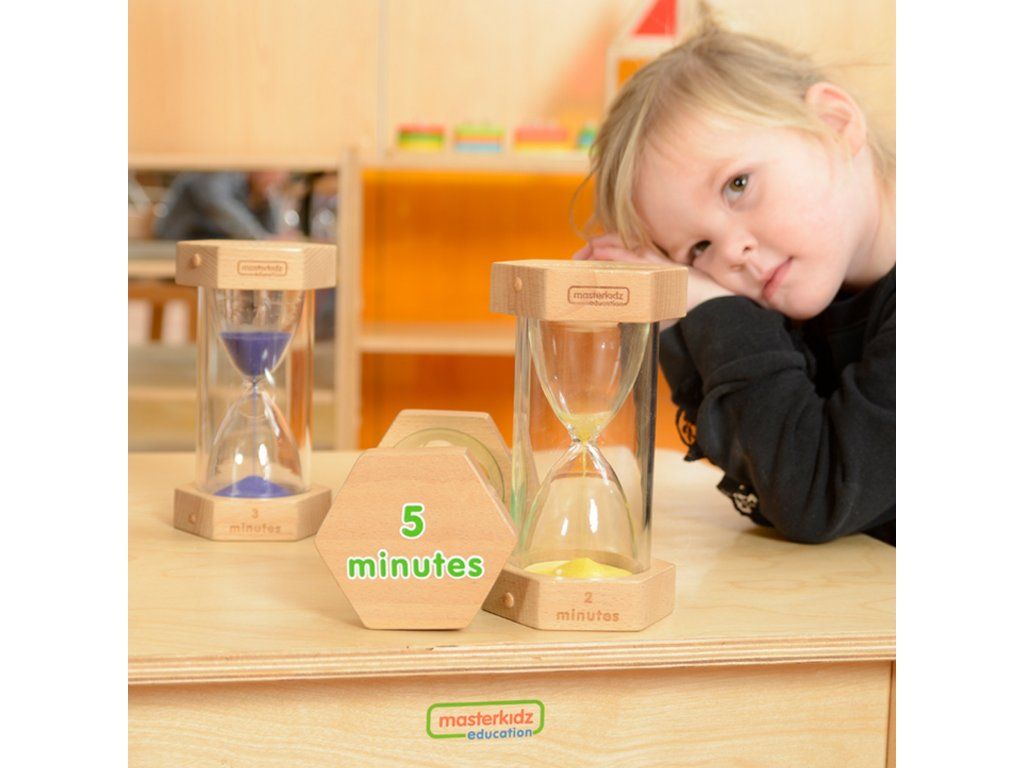 Presýpacie hodiny sa môžu používať na to, aby si dieťa uvedomilo plynutie času a časových jednotiek a aby vykonávalo činnosti týkajúce sa času. Vďaka nim je učenie oveľa zábavnejšie.