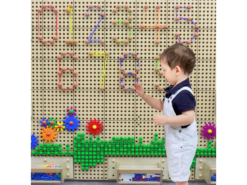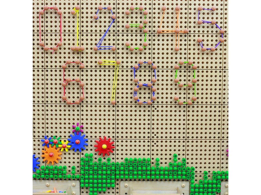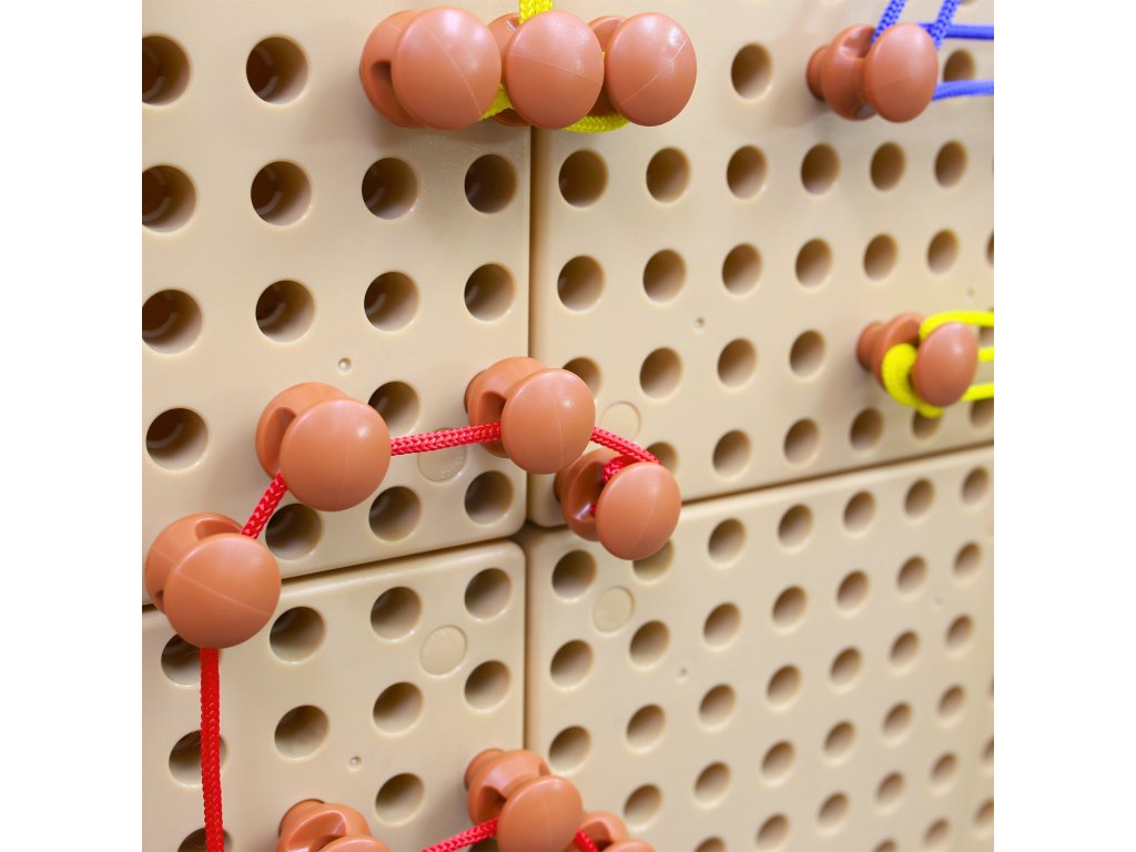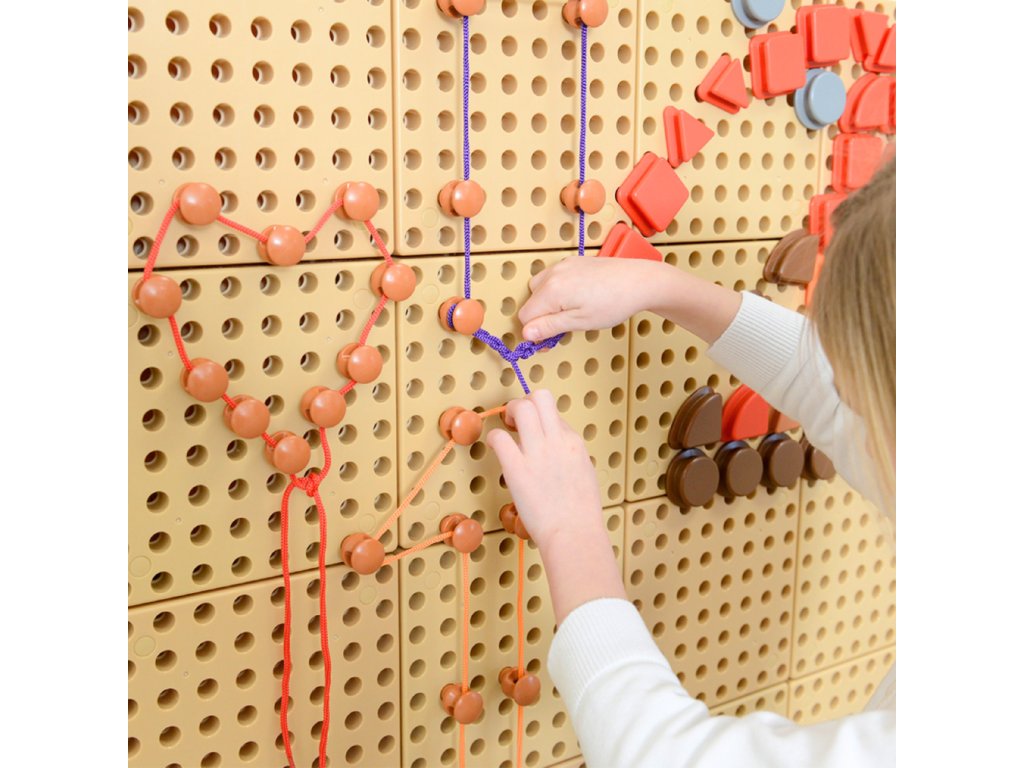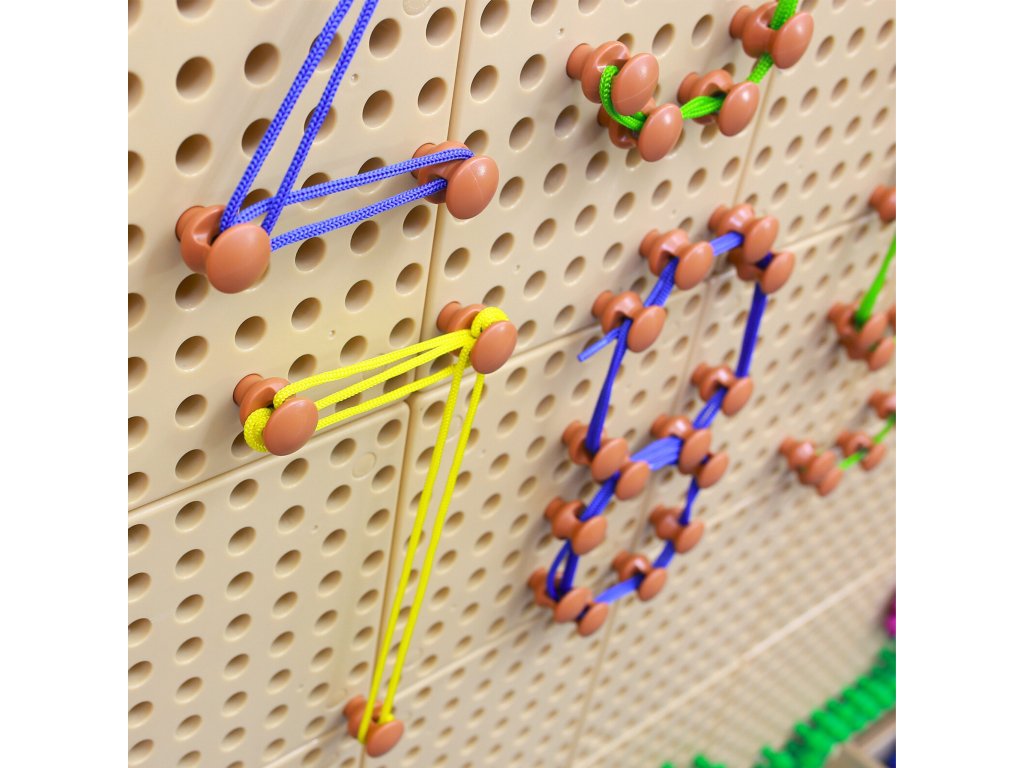 Umiestnite kolíky na správne miesta a potom ich spojte farebnými šnúrkami. Týmto spôsobom môžete "kresliť" písmená, čísla, geometrické útvary a čokoľvek iné, čo vás napadne.