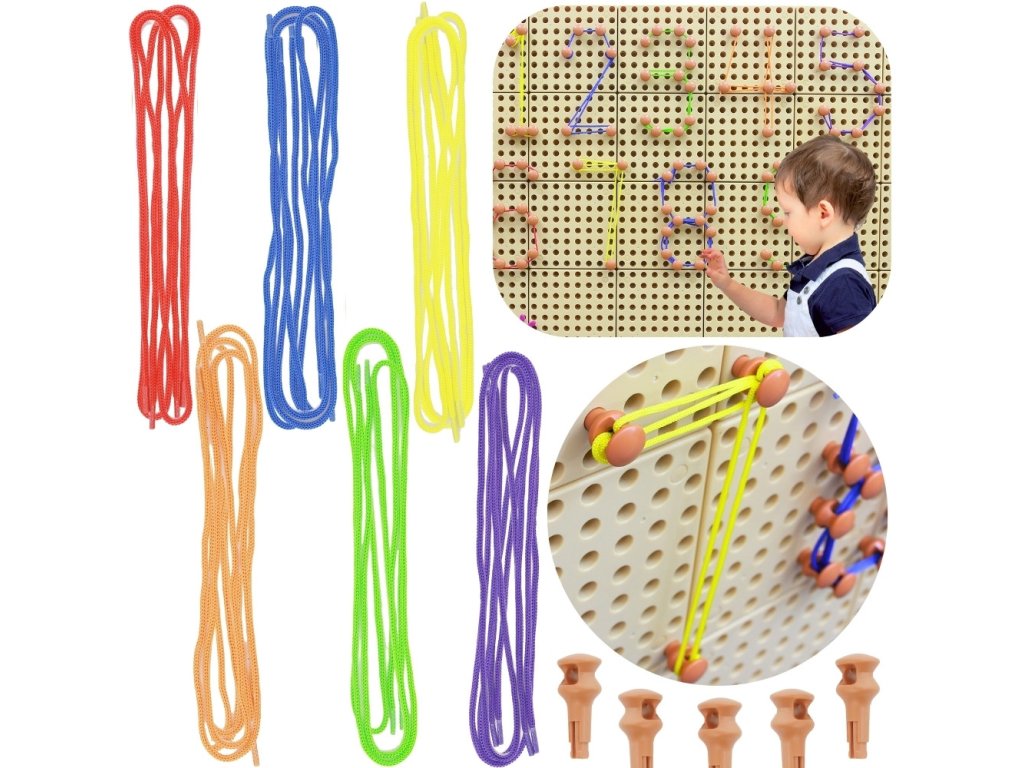 Kolíčky na bielizeň so šnúrkami sa dajú použiť na tvorivé obrázky alebo na precvičovanie matematiky a písmen. Povrázky sa dajú použiť na vytvorenie matematických operácií na tabuli. Stimuluje to myslenie a je to zábavné, takže učenie ide oveľa ľahšie ako tradičnou formou.