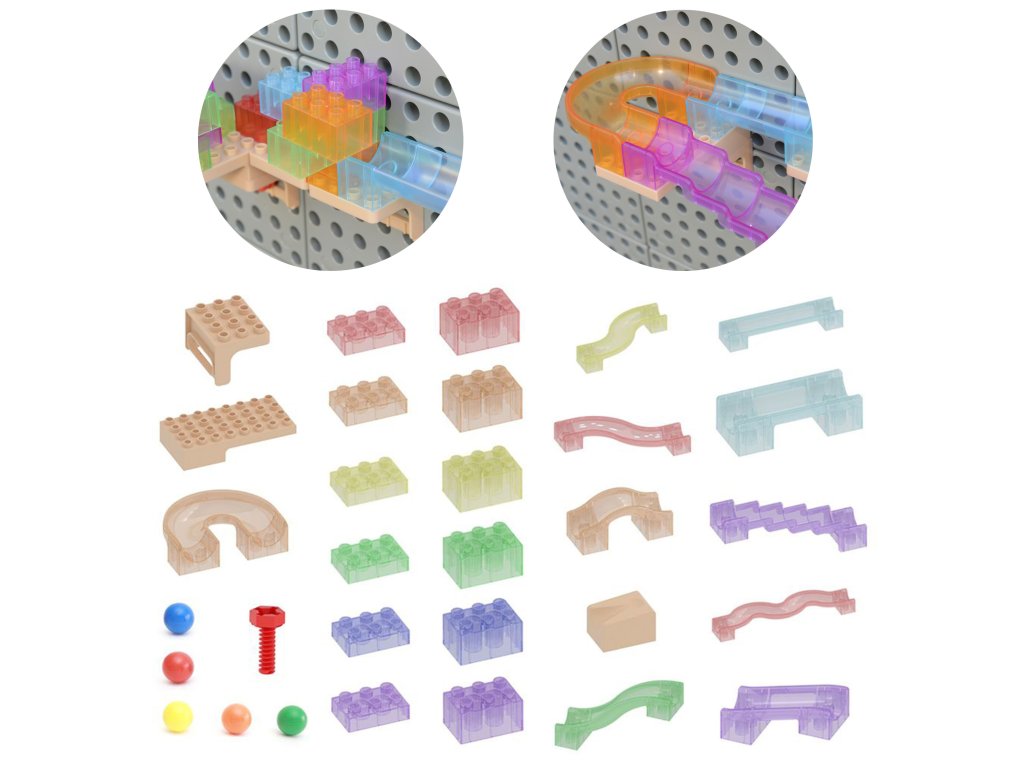 - - Ide o dokonalú hračku s guľôčkovou dráhou, s ktorou si deti môžu zostavovať dráhy a trate pridávaním rôznych kociek, meničov smeru a iných pohybových mechanizmov