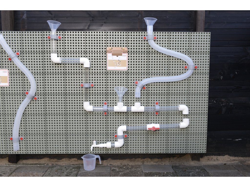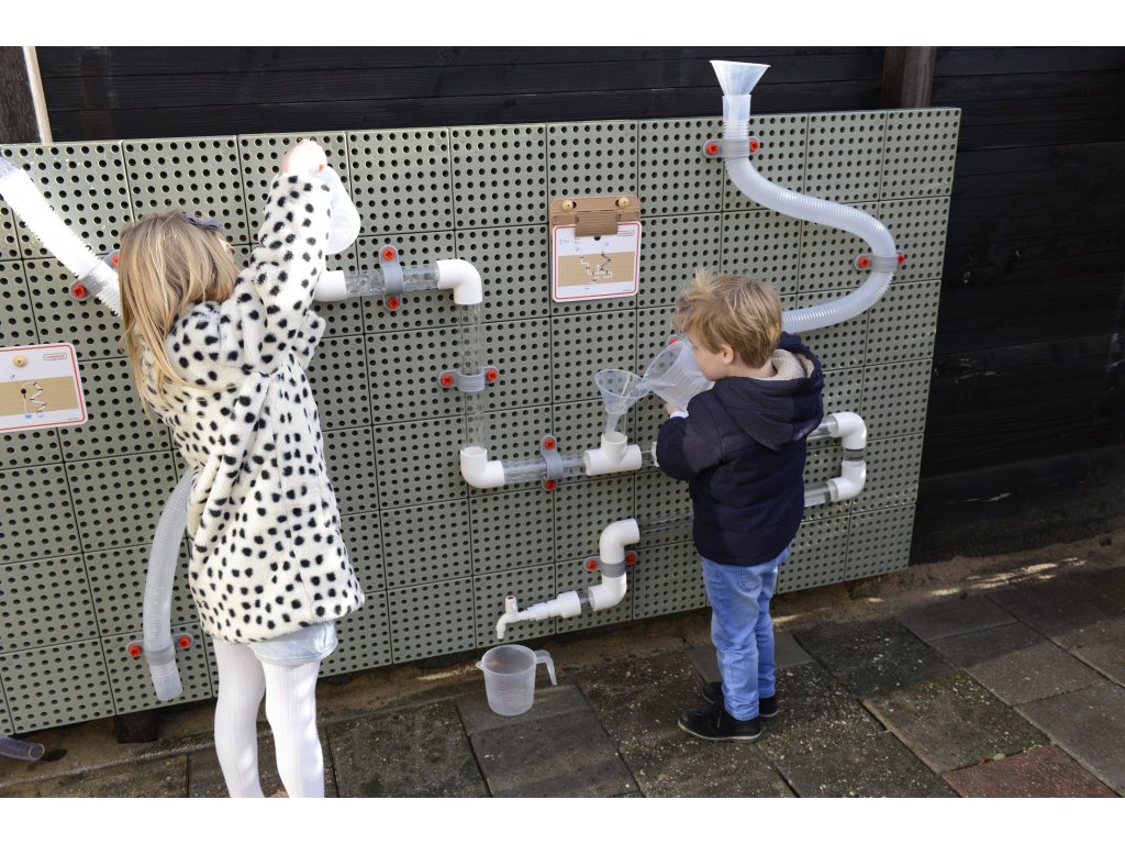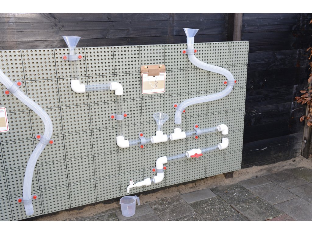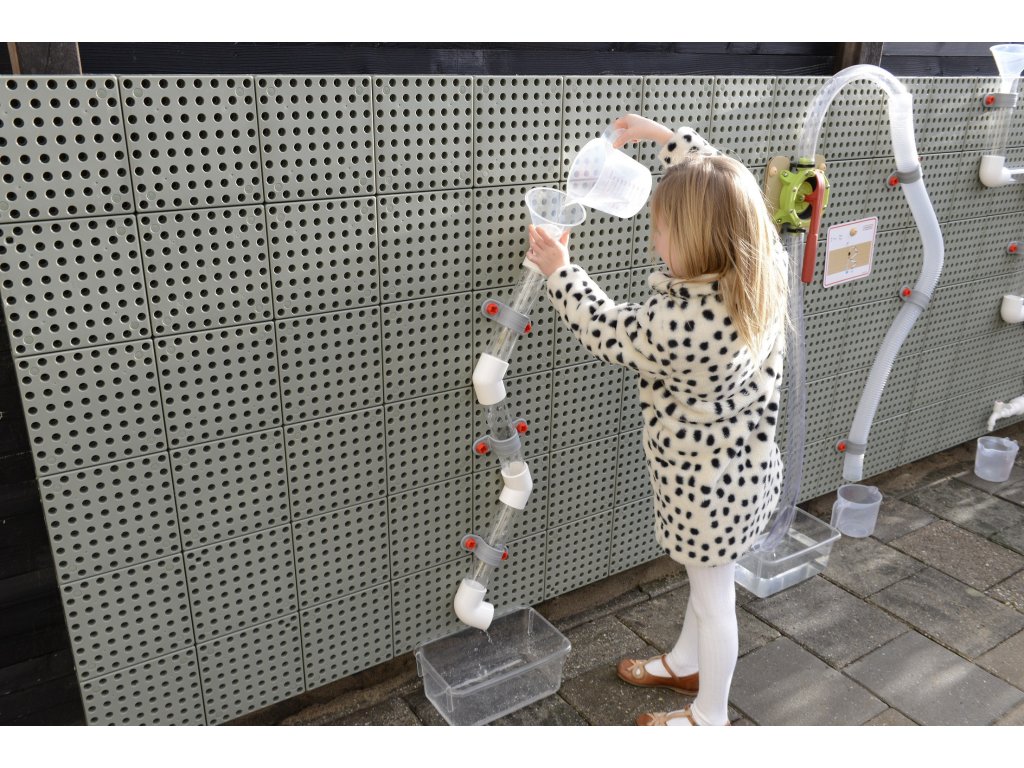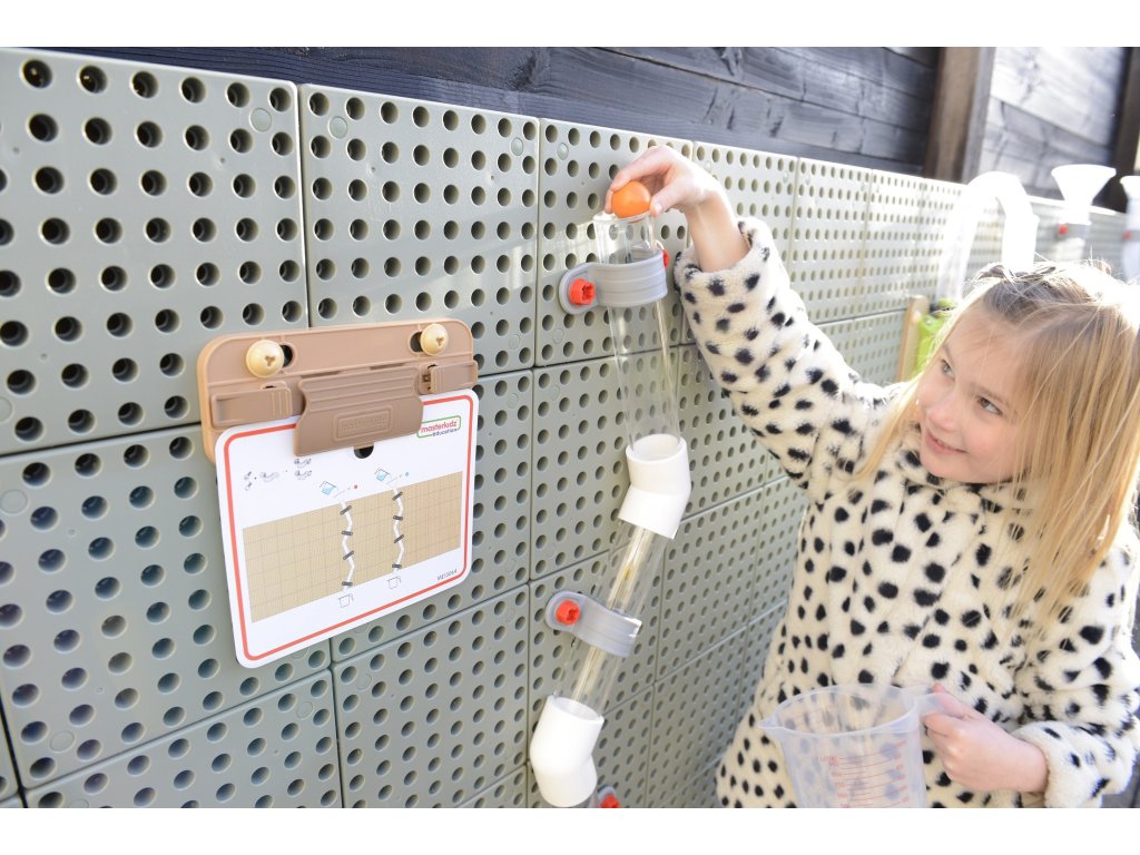 K súprave možno pridať vodné čerpadlo, aby bola zábava ešte zaujímavejšia. Vodu môžete prepúšťať cez potrubia tak, že ju nalejete do lievikov pomocou priložených džbánov, ale môžete tiež vidieť, ako padajú drevené guľôčky, tým, že ich pustíte.Môžete postaviť jeden obrovský systém potrubí alebo niekoľko menších, aby sa mohlo hrať niekoľko detí naraz. Úžasná hračka od spoločnosti Masterkidz na stavbu hydraulického systému.