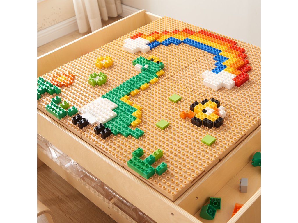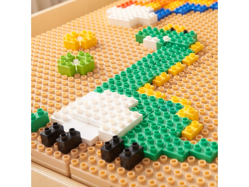 Stavebnice Masterkidzje kreatívna sada, ktorá umožňuje deťom voľne stavať farebné vzory a obrázky. Vďaka špeciálnemu dizajnu kociek ich môžu batoľatá ľahko zatlačiť do zeme, vytvárať vlastné kompozície a rozvíjať svoju predstavivosť. Súprava podporuje samostatnú hru, ale výborne poslúži aj na spoločné tvorenie s rovesníkmi alebo dospelými.