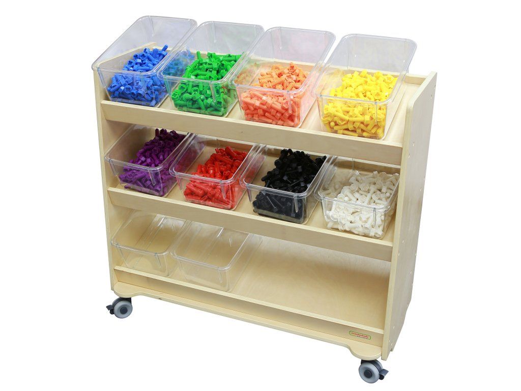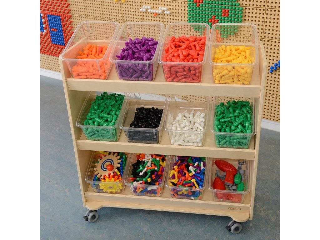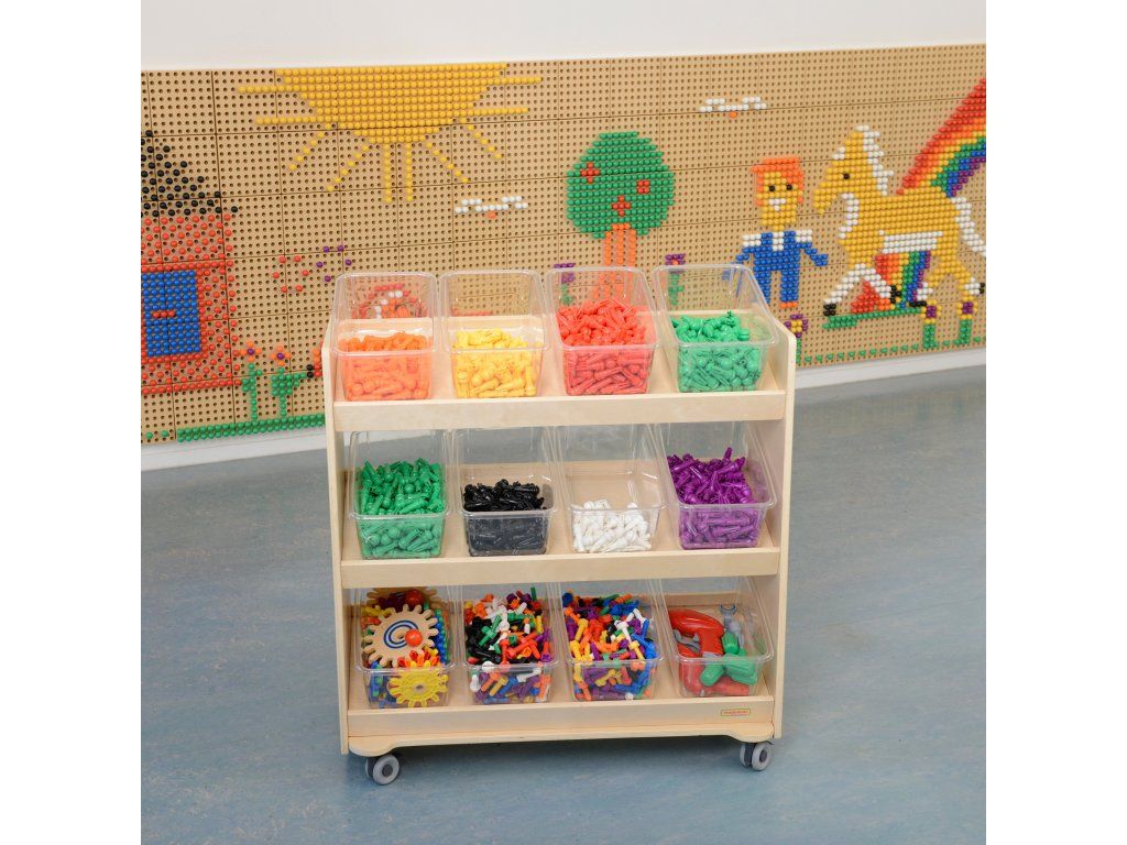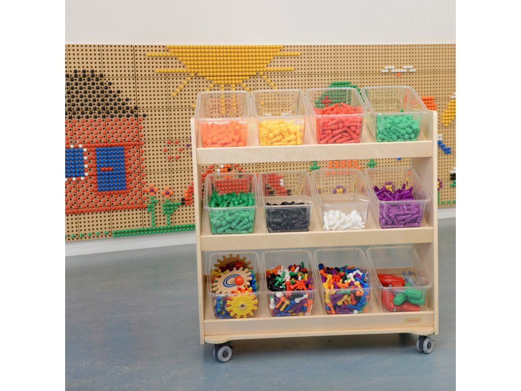 Mobilný regál na kolieskach ME29959 je moderné a robustné zariadenie do každej vzdelávacej miestnosti. Je navrhnutý s ohľadom na pohodlie najmladších používateľov a umožňuje jednoduché ukladanie a organizáciu malých a stredne veľkých predmetov, ako sú skrutky, matice a kolíky. Vďaka svojmu elegantnému dizajnu a funkčnosti dokonale zapadá do vzdelávacieho priestoru a podporuje samostatnosť a kreativitu detí počas aktivít.