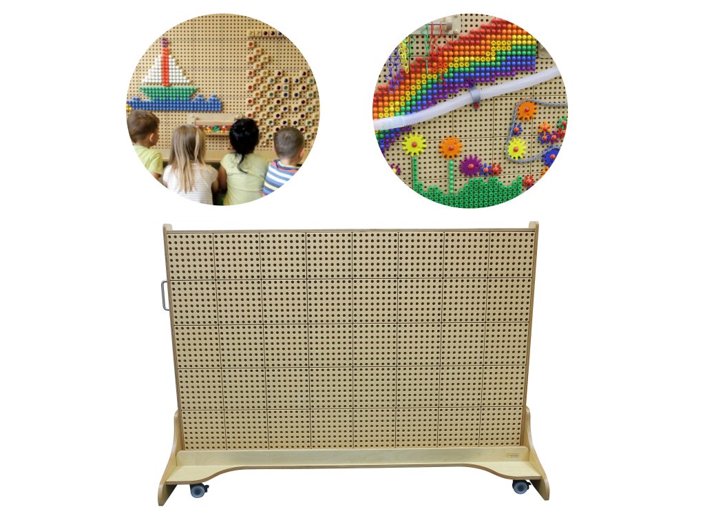 Manipulačná tabuľa STEM je multifunkčná mobilná stena na aktivity určená na vzdelávanie a hru detí. Skladá sa z robustnej drevenej konštrukcie s perforovanými panelmi, ktoré umožňujú jednoduché pripevnenie rôznych vzdelávacích a manipulačných prvkov.