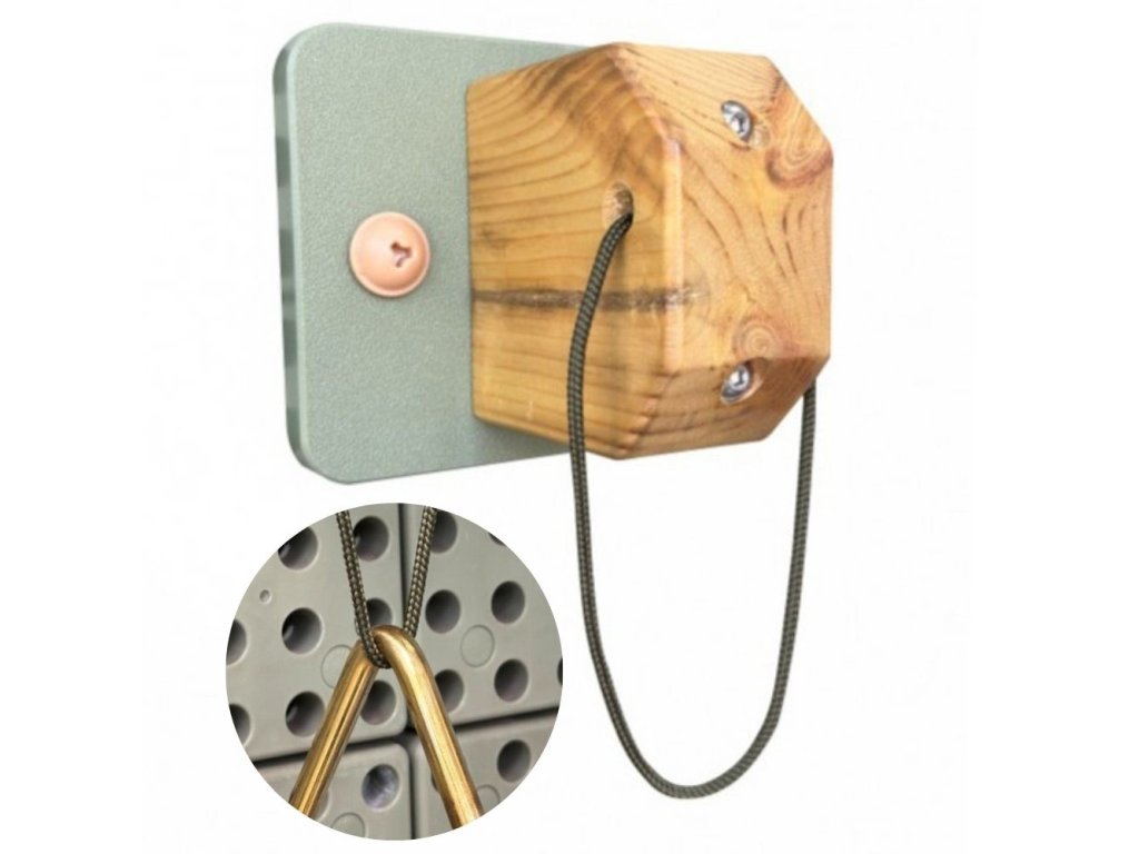- - Drevený vešiak s lanom na zavesenie predmetov.