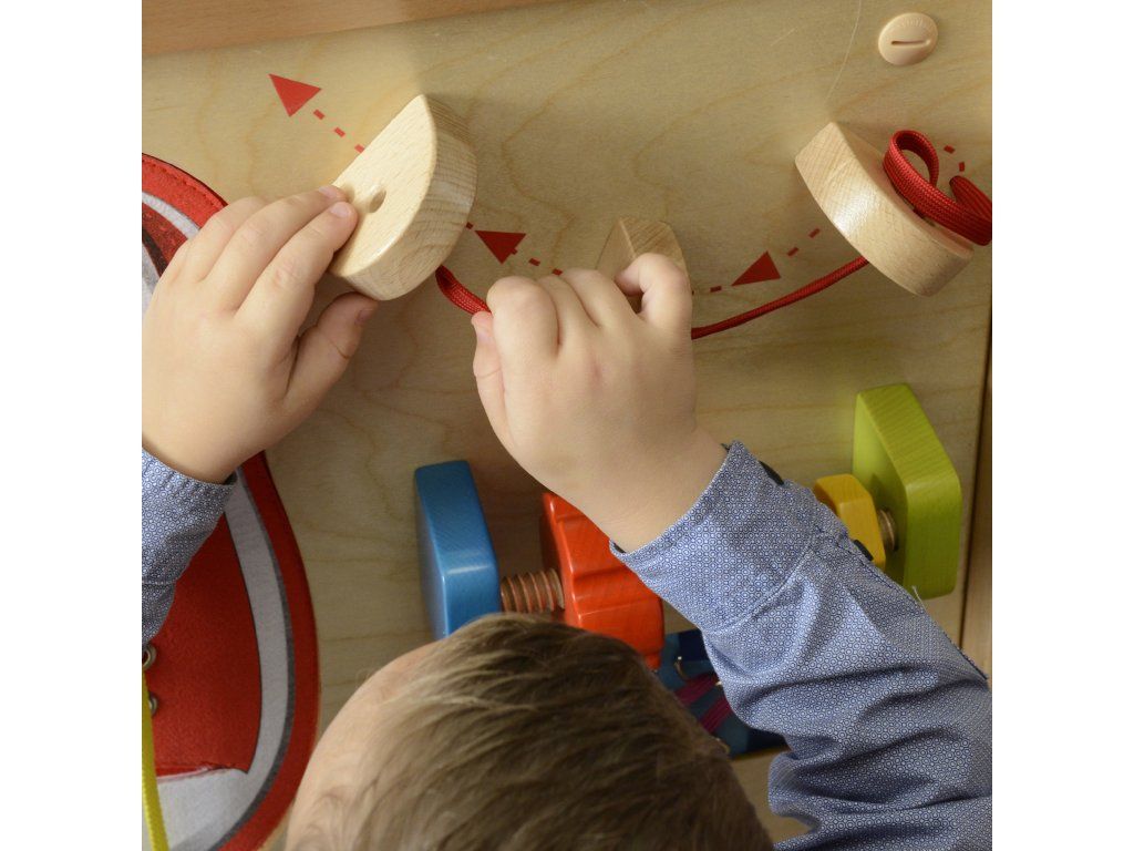 - - okrem toho prevlečenie červenej šnúrky cez tri otvory rôznych veľkostí bude hra zaujímavejšia a čím menšia diera, tým ťažšia úloha a tým väčšie uspokojenie po nej