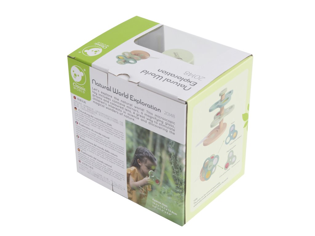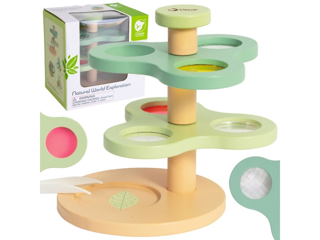 Drevený mikroskop 2 v 1 Lupa "Skúmanie prírodného sveta" z adresyKLASICKÝ SVETje skvelá zábava pre malých objaviteľov. Táto mikroskopická hračka obsahuje konkávne zrkadlá, lupy, hranoly a farebné šošovky. Skvelý spôsob, ako podnietiť záujem detí o vedu a objavovanie čarovných zázrakov prírody.