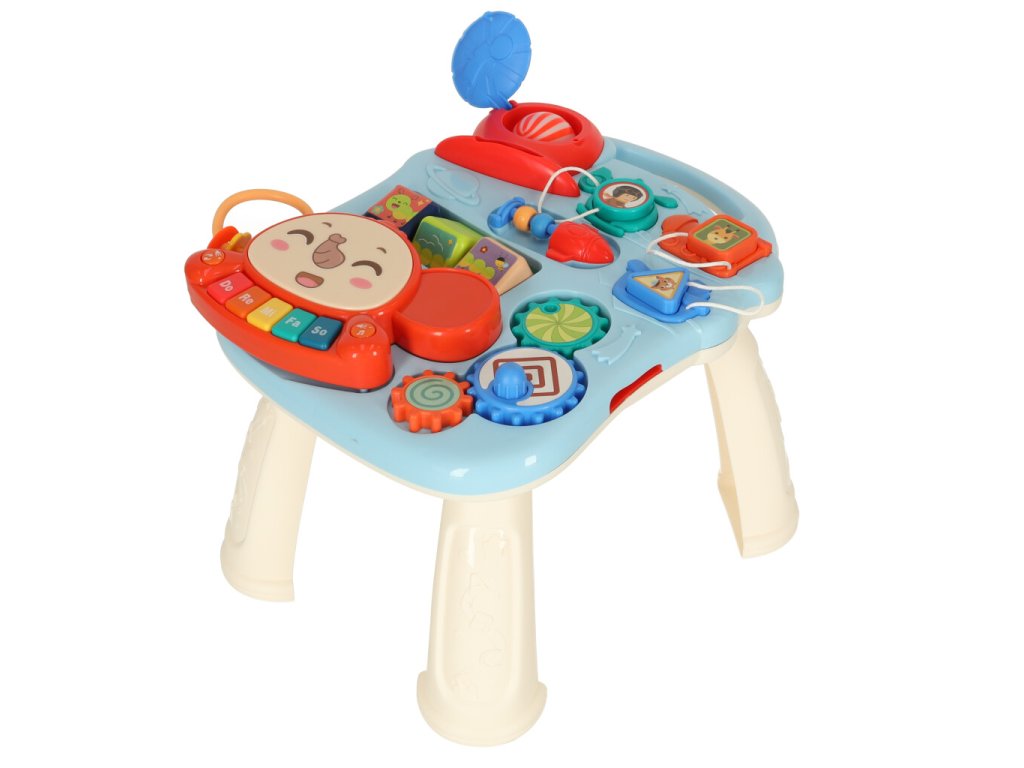 Interaktívny stôl bude skvelá pre trochu skúsenejšie dieťa - batoľa môže stáť pri stole a hrať sa s mnohými prvkami, aby uspokojilo svoju zvedavosť.