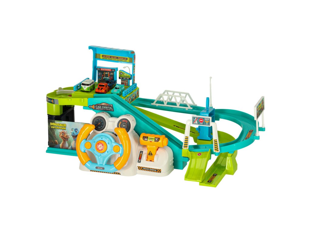 Parkovacia garáž s autodráhou dinosaurus 4 autá