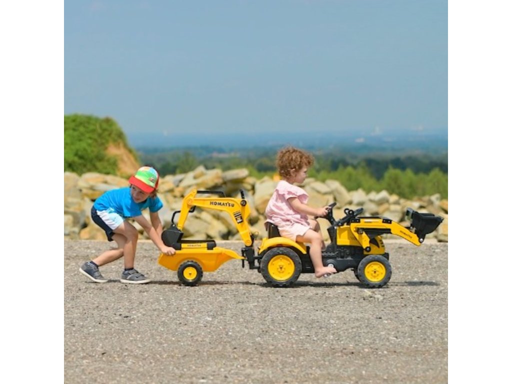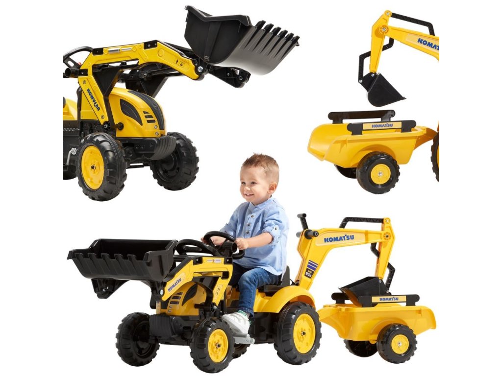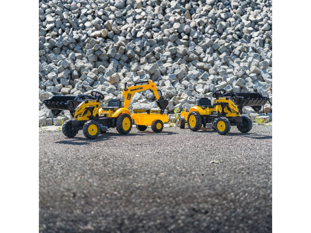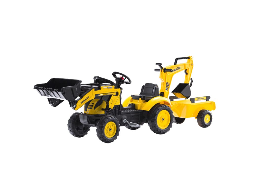 Pedálový traktor FALK Komatsu s lyžicou rýpadla a prívesom