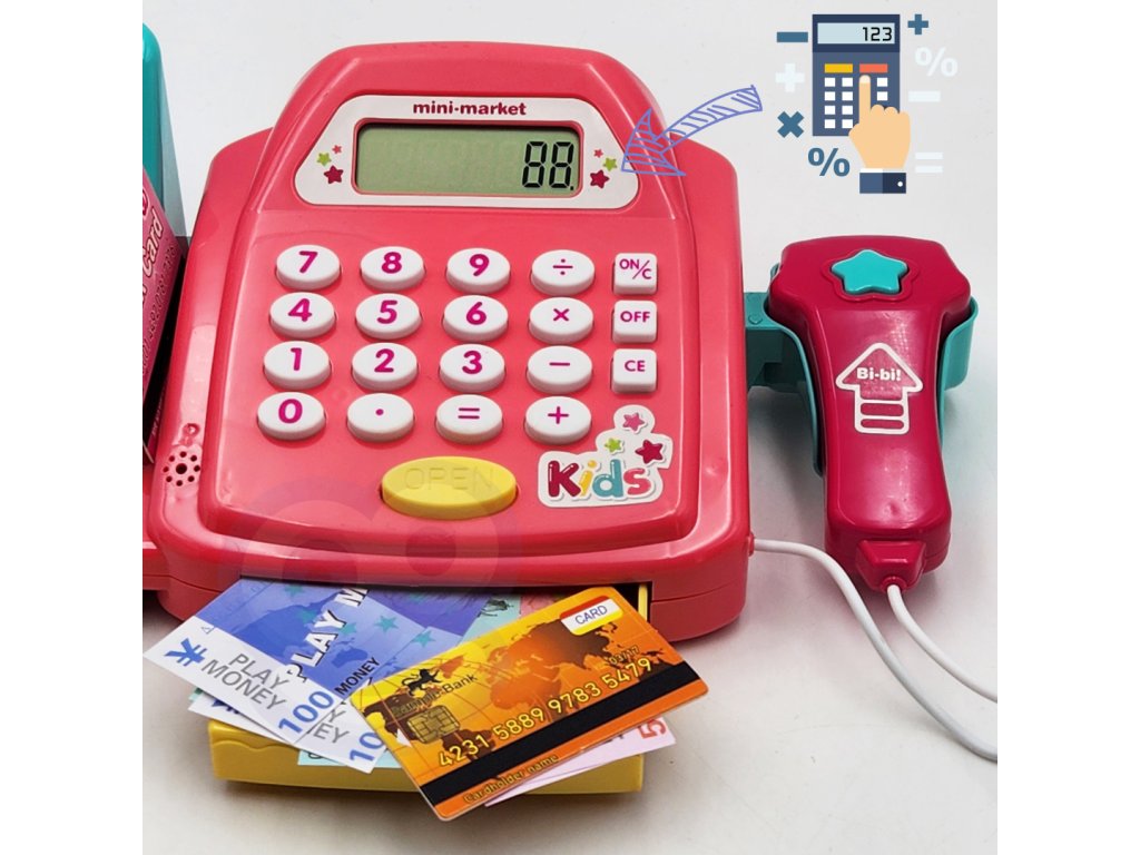 - - Praktický zásobník na peniaze sa vysúva ako skutočná pokladňa, čo dodáva každej transakcii extra zábavu