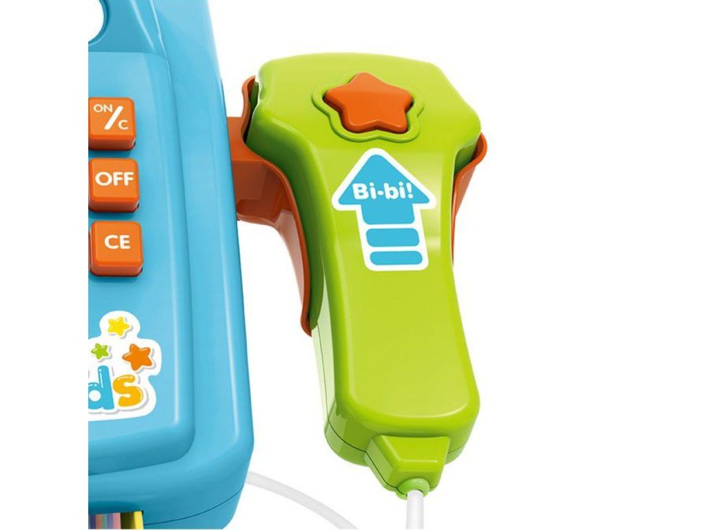 - - Pokladňa vybavená so zvukovými a svetelnými efektmi, ktoré napodobňujú fungovanie skutočného fiškálneho zariadenia.