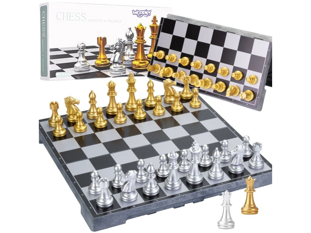 Skladacia magnetická šachová súprava od značky Woopie je elegantnou a praktickou voľbou pre milovníkov klasických strategických hier, ktorí si cenia mobilitu a estetiku. Obsahuje zlaté a strieborné prvky, smagnetická tabuľa, zabezpečuje stabilitu figúrok aj pri pohybe hry. Vďakaskladacia konštrukcia a kompaktné rozmery ideálne na doma aj na cesty - do vlaku, na dovolenku alebo na návštevu k priateľom. Figúrky sú vyrobené z ľahkého a odolného materiálu s kovovou povrchovou úpravou - zlatou a striebornou - ktorá súprave dodáva eleganciu a prestíž. Skladací mechanizmus umožňuje zmenšiť celú dosku na kompaktné rozmery, čo uľahčuje skladovanie a prepravu súpravy bez rizika vysypania figúrok.