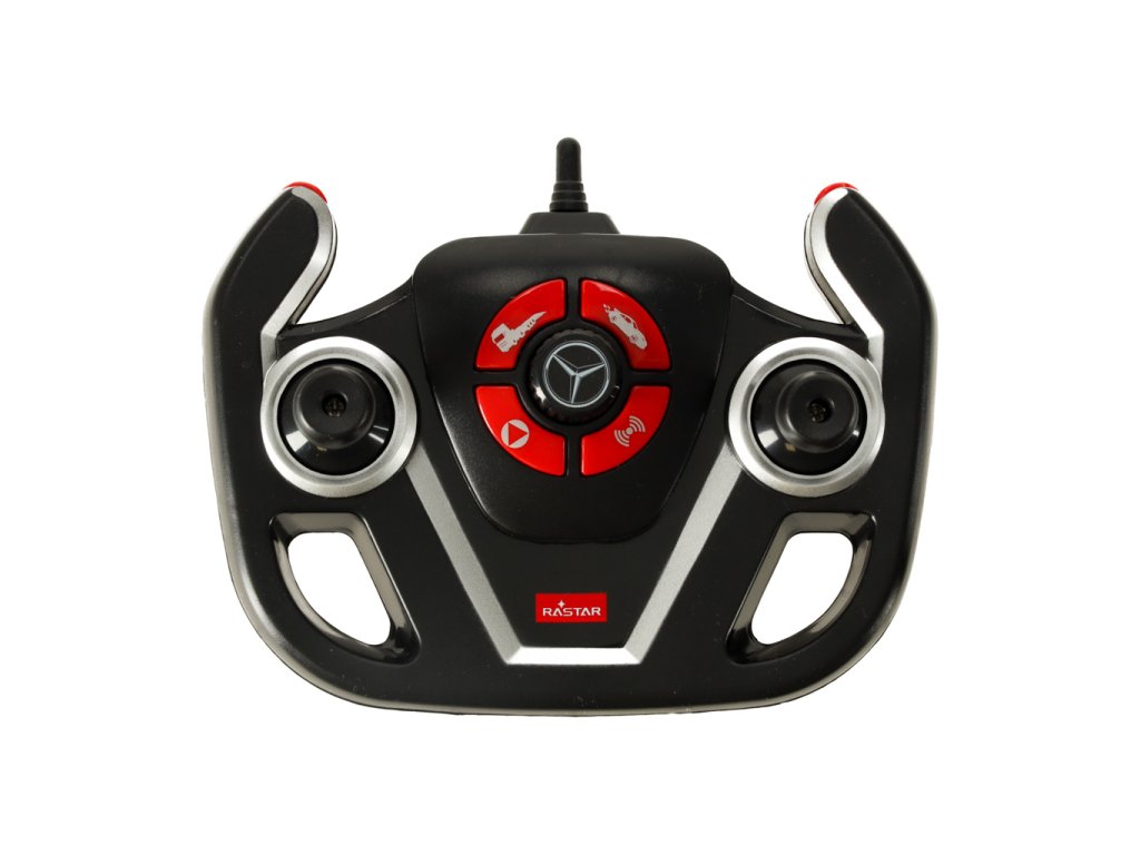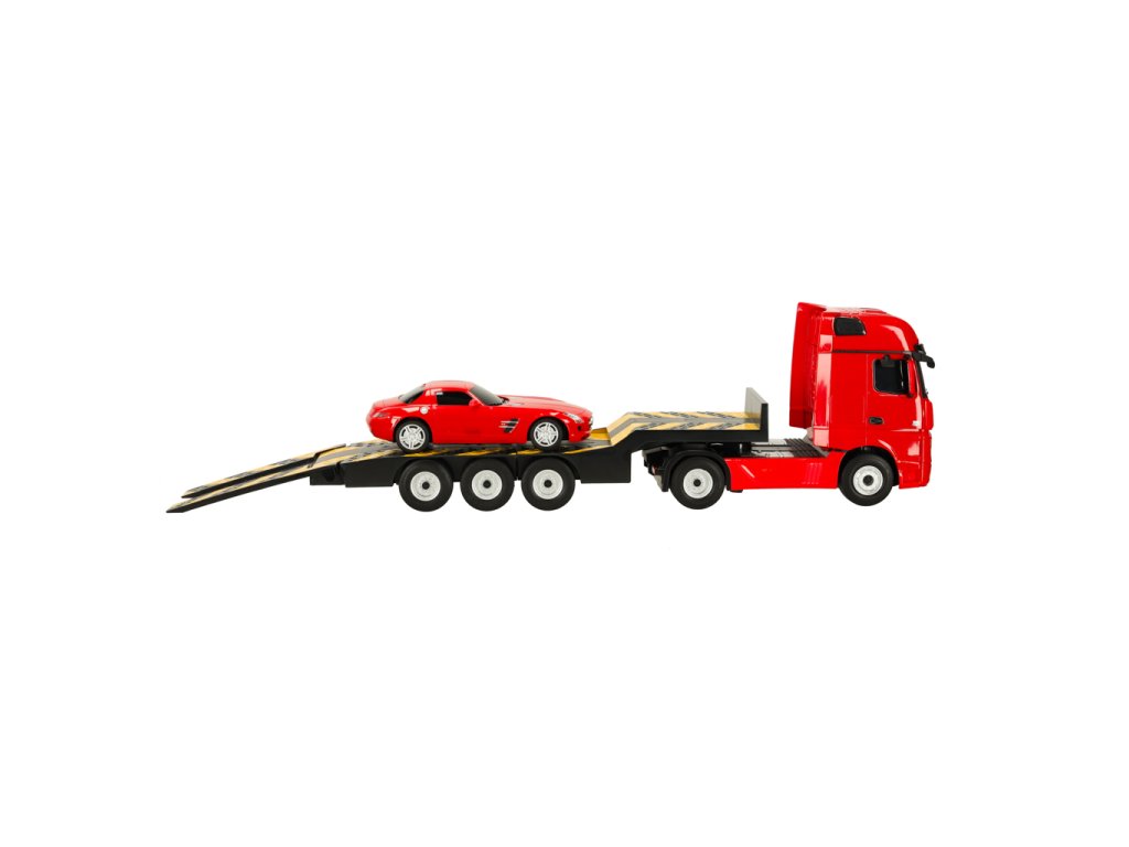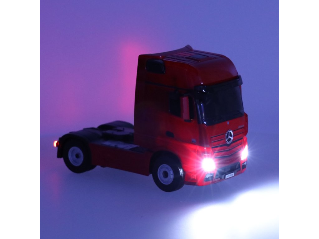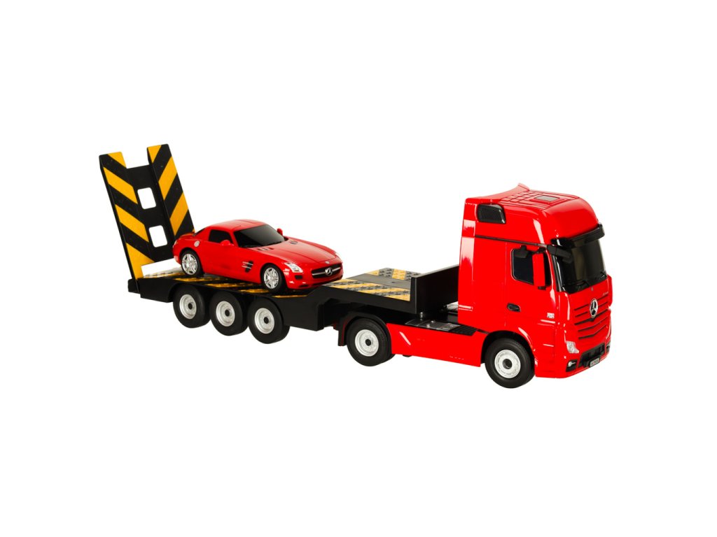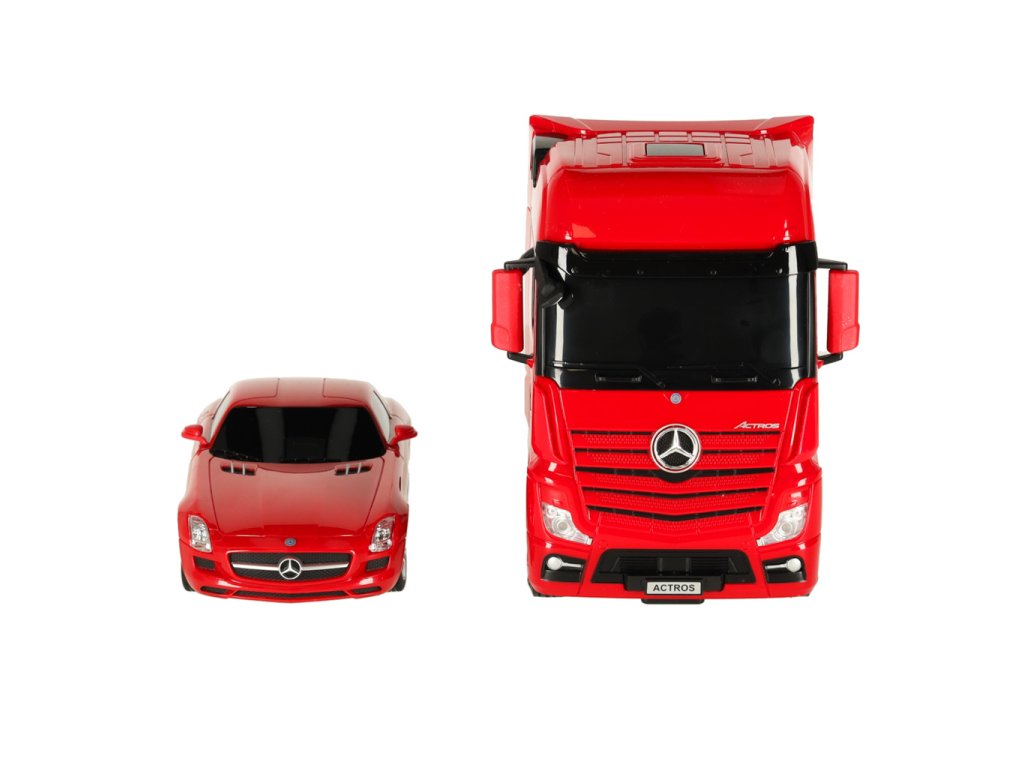Model nákladného auta Mercedes-Benz Actros je vybavený funkčným nadjazdom, ktorý možno pomocou ovládača zdvíhať a spúšťať. Okrem toho ovládačumožňuje meniť rýchlostný režim športového vozidla Mercedes-Benz. Autá aj ovládač sú napájané batériami AA (nie sú súčasťou balenia).