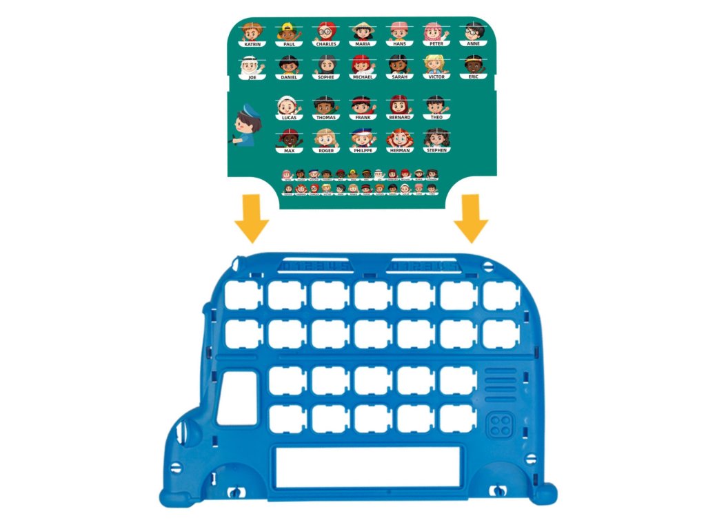 - - 2 tabule v tvare autobusu (modrá a červená)