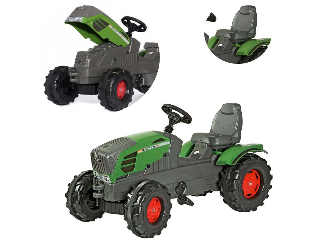 Jedinečný traktorrollyFarmTrac Fendt 211od značkyRollyToys je perfektný šliapací traktor pre malých záhradkárov a farmárov! Je to hračka, ktorá nielen zabaví, ale aj rozvíja predstavivosť a podporuje aktivity v prírode. Mechanický systém je úplne uzavretý a pre dieťa neprístupný, čo zaručuje najvyššiu úroveň bezpečnosti. Špeciálne podložky pod kolesá znižujú hluk, vďaka čomu je hra tichšia a pohodlnejšia pre dieťa aj jeho okolie. Okrem toho je pod kapotou traktora úložný priestor na drobné predmety - stačí zdvihnúť kapotu a uložiť tam potrebné hračky.
