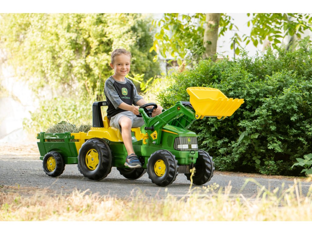 TraktorrollyJuniorvyrobené na základe licencieJohn Deere s vedrom a prívesom z Hračky Rolly Toys je jedným z najlepších traktorov pre deti na trhu. Hračka je splneným snom mnohých malých traktoristov. Je starostlivo vyrobená, s dôrazom na najmenší detail. Takouto hračkou by nepohrdol žiadny skutočný farmár. Ideálny darček na akúkoľvek príležitosť. Tento zelený šlapací traktor je ideálnou hračkou pre deti od 3 rokov. Hračka bude vašim deťom slúžiť dlhé roky a poskytne im nielen skvelú zábavu, ale aj rozvoj ich motorických schopností a pohybovej koordinácie. Konštrukcia traktora zaručuje plnúzabezpečenie počas hry vďakazabudovaný mechanický systémktorá chráni dieťa pred náhodným poranením. Okrem toho sa dá kapota traktora zdvihnúť, aby sa dieťa mohlo hrať na opravu svojho vozidla. Ďalšie funkcie, ako naprpohyblivé vedro iodnímateľný príves, spestrujú hru a umožňujú dieťaťu prenášať rôzne predmety a simulovať prácu na farme.Otváracia predná kapota zvyšuje realistickosť a umožňuje dieťaťu hrať sa ešte interaktívnejšie. Náboje a robustný mechanizmus reťazového prevodu zabezpečujú odolnosť a spoľahlivosť hračky.