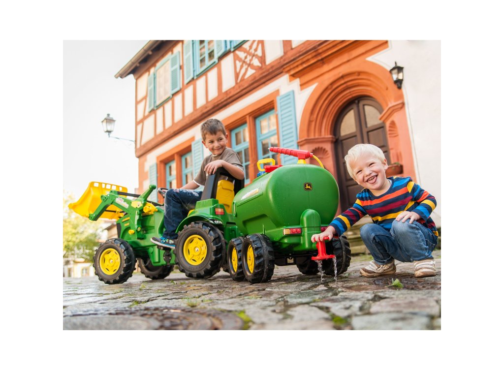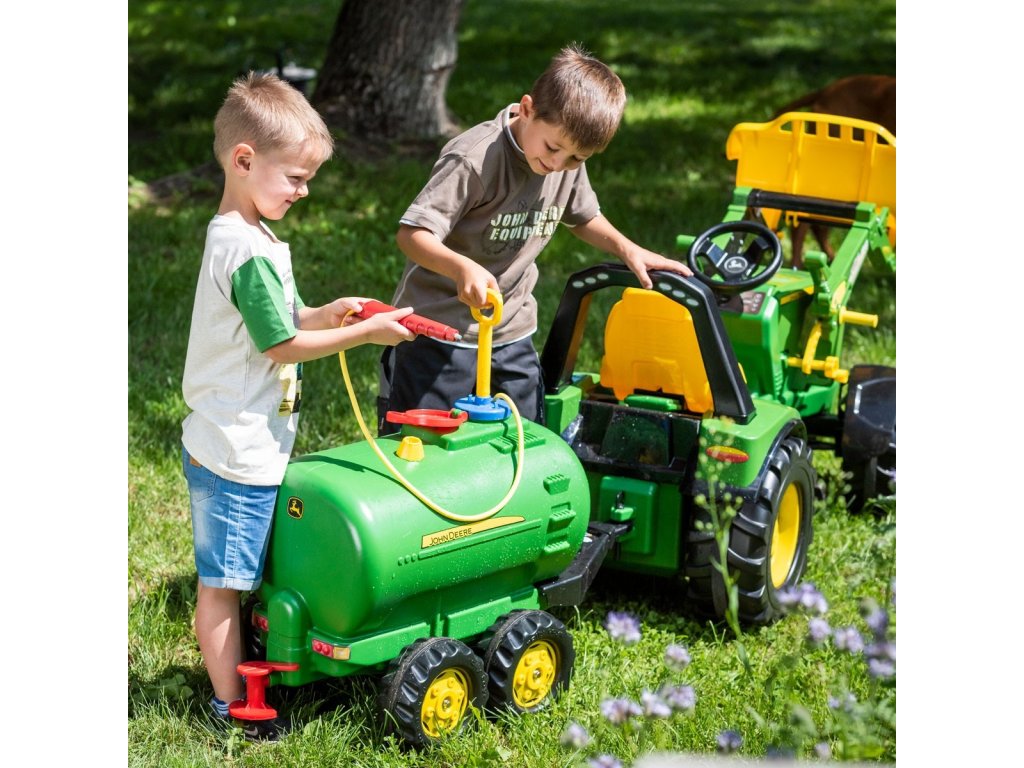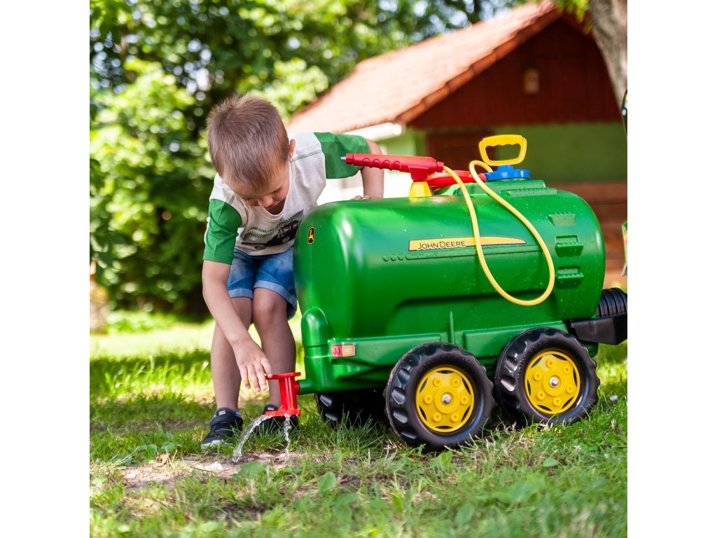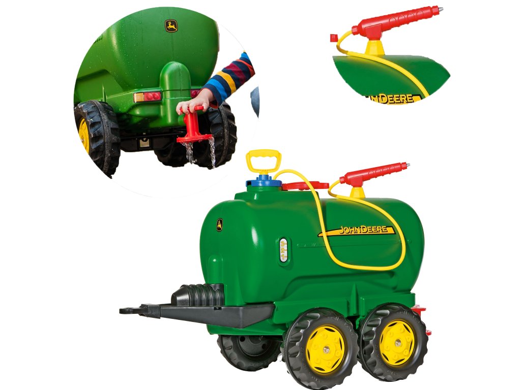 Tento príves je vhodný pre všetky traktory ROLLY TOYS. Je to dvojnápravová cisterna s licenciou John Deere, ktorú možno naplniť vodou a potom postrekovať pomocou postrekovača a čerpadla.