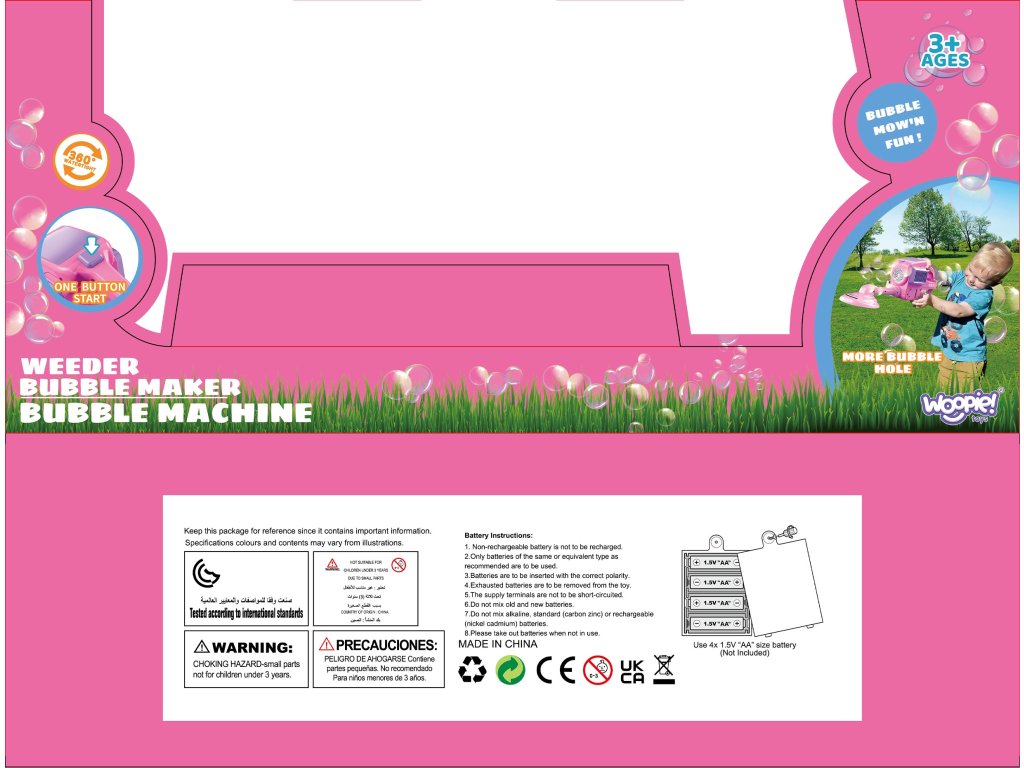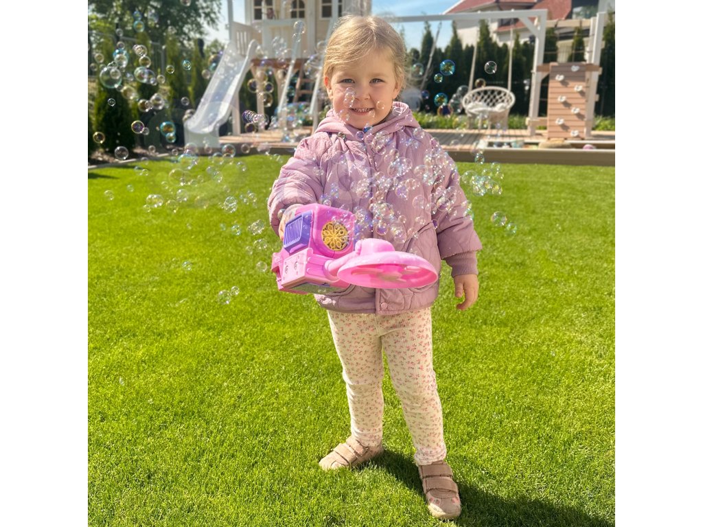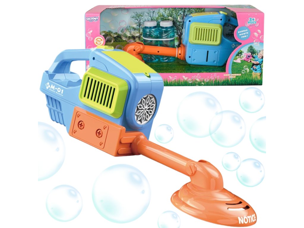 Výroba zbrane Mydlové bubliny - kosačka na trávu od značkyWOOPIE je výnimočná pomôcka, ktorá posunie zábavu na úplne novú úroveň. Nie je to len hračka, ale skutočná atrakcia, ktorá sa uplatní na každej párty, v záhrade alebo počas obyčajného popoludnia stráveného vonku. Vďaka svojmu inovatívnemu dizajnu avýnimočné vizuálne efekty, sa určite stane obľúbenou pomôckou pre deti aj dospelých a poskytne im veľa zábavy a nezabudnuteľných chvíľ. Nástavec na kosačku je odnímateľný, čo znamená, že v okamihu môžetepremeniť ho na štýlový stroj do bublín. Skutočné kúzlo sa začne, keď sa pištoľ zapne. Otvor, z ktorého vyletia bubliny, je tiežotáča sa o 360 stupňov. Tento pohyb vytvára úžasný efekt, ktorý umocňuje vizuálny zážitok a spôsobuje, že bubliny sa vznášajú vo vzduchu tými najneočakávanejšími smermi.