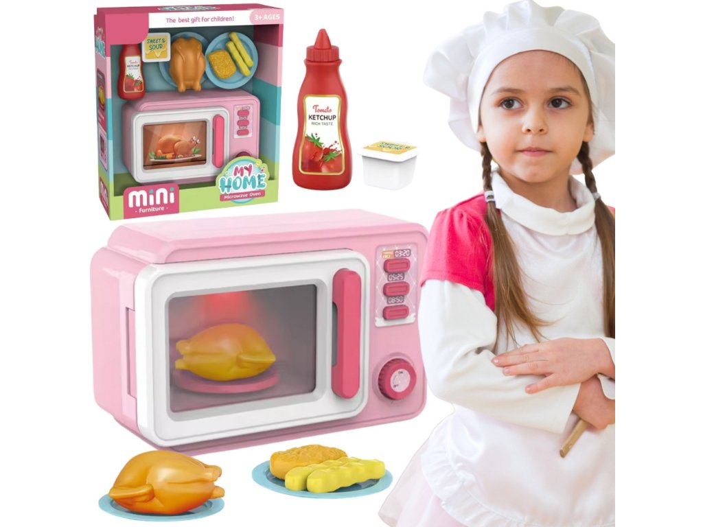 Hračka Ružový sporák Mikrovlnná rúra je moderná hračka, ktorá prináša kuchynské revolúcie priamo do detskej izby! Vďakarealistické funkcie a svetelné a zvukové efekty, táto interaktívna súprava nielen upúta detské oči, ale inšpiruje aj k tvorivým a vzdelávacím hrám. Mikrovlnná rúra bola navrhnutá tak, aby čo najvernejšie kopírovala skutočný domáci spotrebič - je vybavenásvetelný interiér,otočná doska azvukové efekty sprevádzajúce prevádzku zariadenia. Pridať k tomutosada príslušenstva na varenie Deti sa môžu donekonečna hrať na varenie! Deti si zvolia čas ohrievania, otvoria a zatvoria dvierka, vložia kurča, hranolky alebo nugetky a potom sledujú, ako sa tanier otáča a LED svetlo imituje prevádzku mikrovlnnej rúry. Hra s týmto varičom umožňuje deťom učiť sa prostredníctvom hrania rolí - Je to ideálna vzdelávacia hračka, ktorá podnecuje predstavivosť a hravou formou uvádza deti do sveta každodenných povinností.