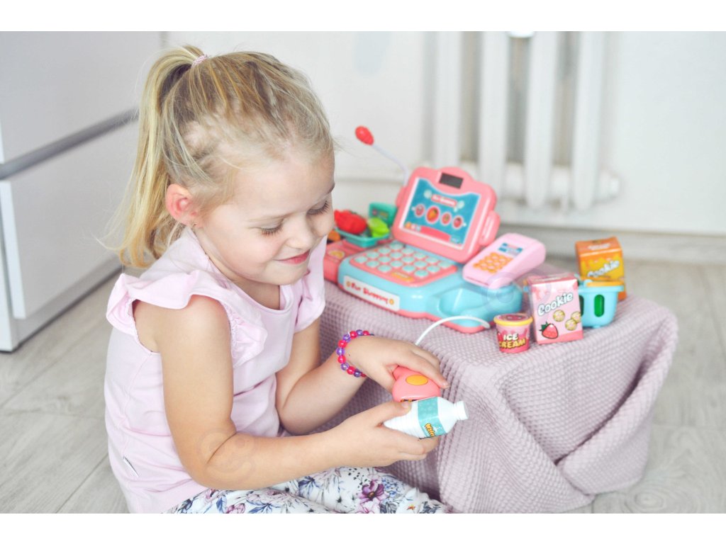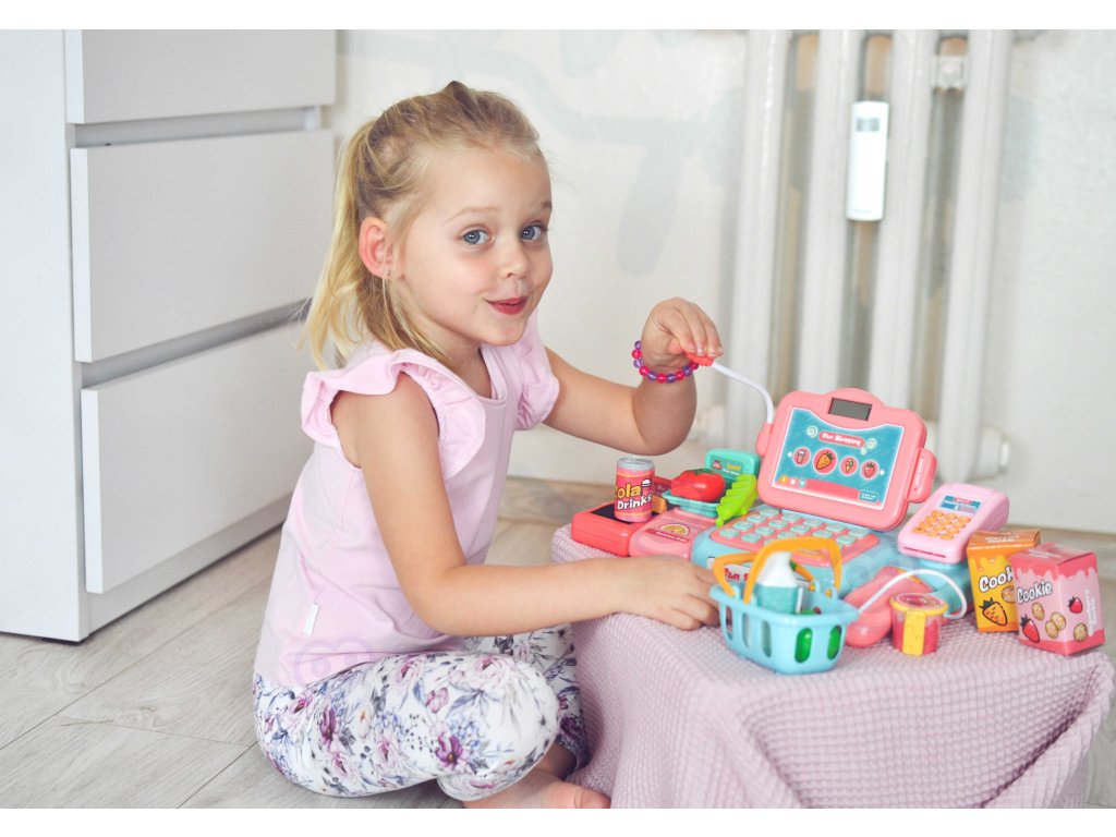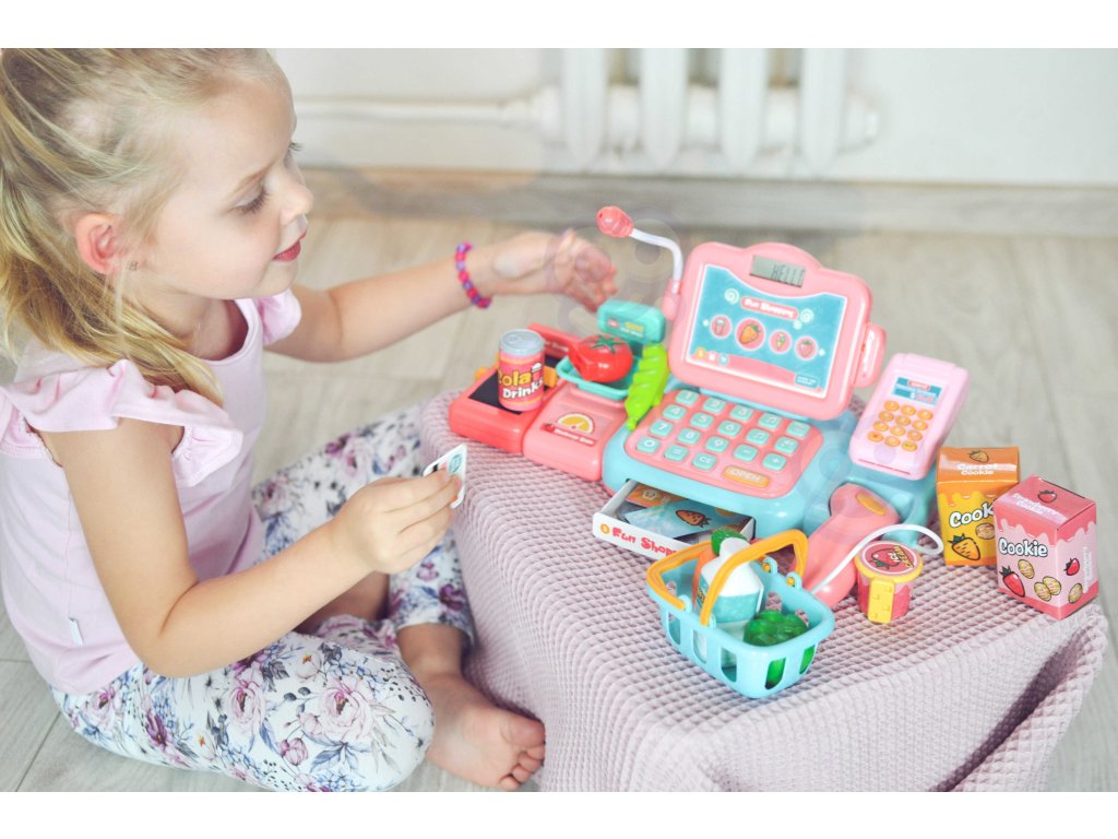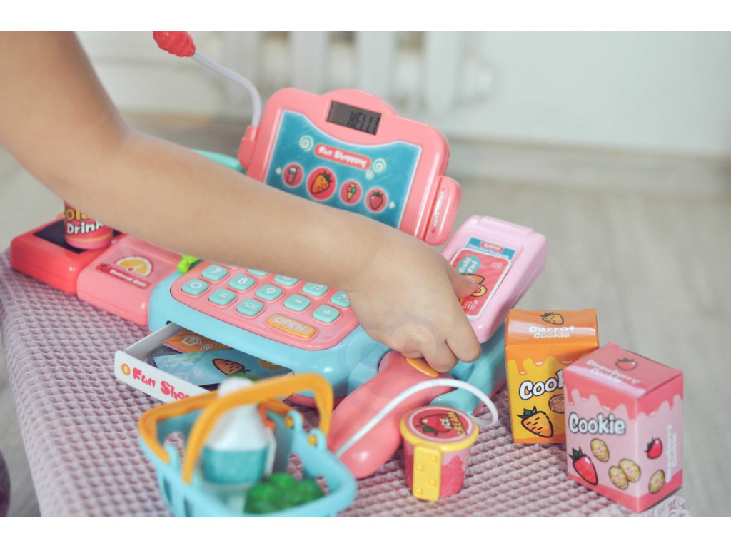 Detská Pokladňa s mnohými doplnkami od Woopie je ideálny pre deti staršie ako 3 roky. Hračka rozvíja detskú predstavivosť a podporuje tvorivé myslenie. Deti môžu zvážiť ovocie a zeleninu a potom ich pomocou klávesnice nabrať do pokladnice. Pomocou čítačky deti naskenujú balíček sušienok alebo fľašu vody. Potom budú môcť zaplatiť dvoma spôsobmi: tradične peniazmi alebo platobnou kartou. Všetko je súčasťou balenia a poskytne vášmu dieťaťu hodiny zábavy.