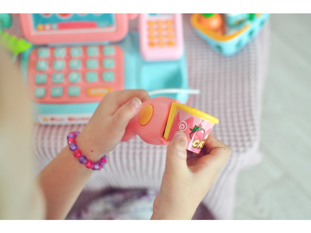 Ružová WOOPIE Detská pokladňa so zvukom, skenerom a mikrofónom + 24 doplnkov vek 3+ (video v popise)