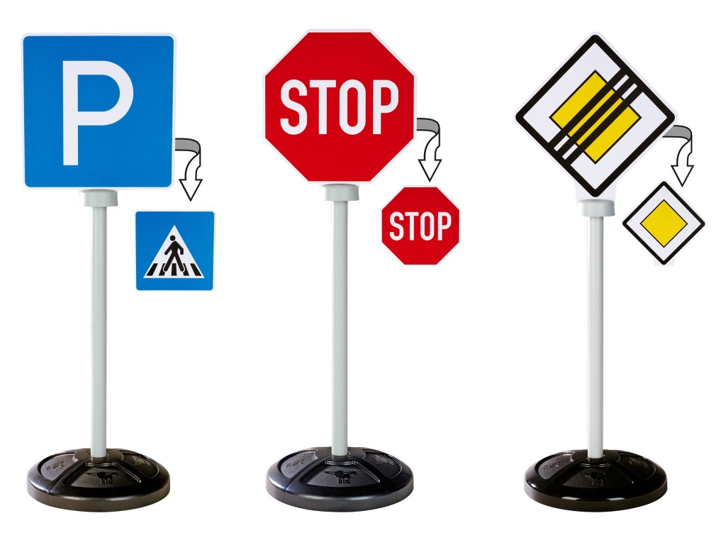 - -Vzdelávacia súprava - 3 dopravné značky s 5 rôznymi označeniami, ktoré deťom pomôžu pochopiť základné pravidlá cestnej premávky.