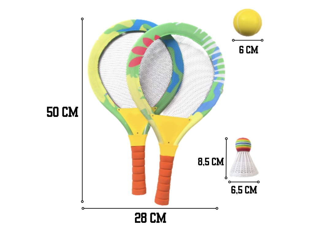 FarebnýPalety pre bedmintonpre deti od značky;Woopie je ideálnou voľbou pre aktívnu a radostnú hru vonku. Súprava je navrhnutá s ohľadom na najmenších a kombinujebezpečnosť, ľahkosť a zábavaponúka deťom skvelú zábavu na dvore, v záhrade, na pláži alebo doma. Súprava je ideálna na hranie so súrodencami, kamarátmi alebo rodičmi. Súprava obsahujedve veľké rakety z ľahkej peny EVA s bezpečnostným napnutím,penová lopta afarebné krídielka s mäkkou špičkou. Hračka bola navrhnutá tak, aby sa s ňou deti mohli ľahko hrať bez toho, aby sa unavili alebo riskovali zranenie. Veľké rozmery rakety im umožňujú ľahko trafiť loptičku, takže hra je jednoduchá a obohacujúca. vďaka žiarivým farbám a mäkkým materiálom po nej deti s radosťou siahnu a rodičia si môžu byť istí, že ich dieťa je v bezpečí.